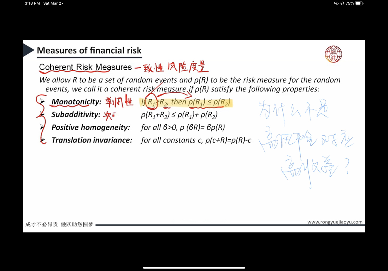 同学你好,单调性指的是质量高(预期收益率较高)的资产其风险也相对较低,跟高风险高收益说的不是一个角度,互不冲突。