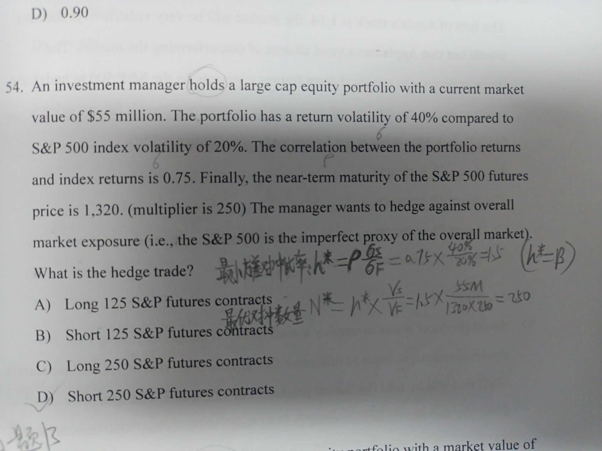 同学你好,β就等于最小对冲比率,具体计算参考图片理解。