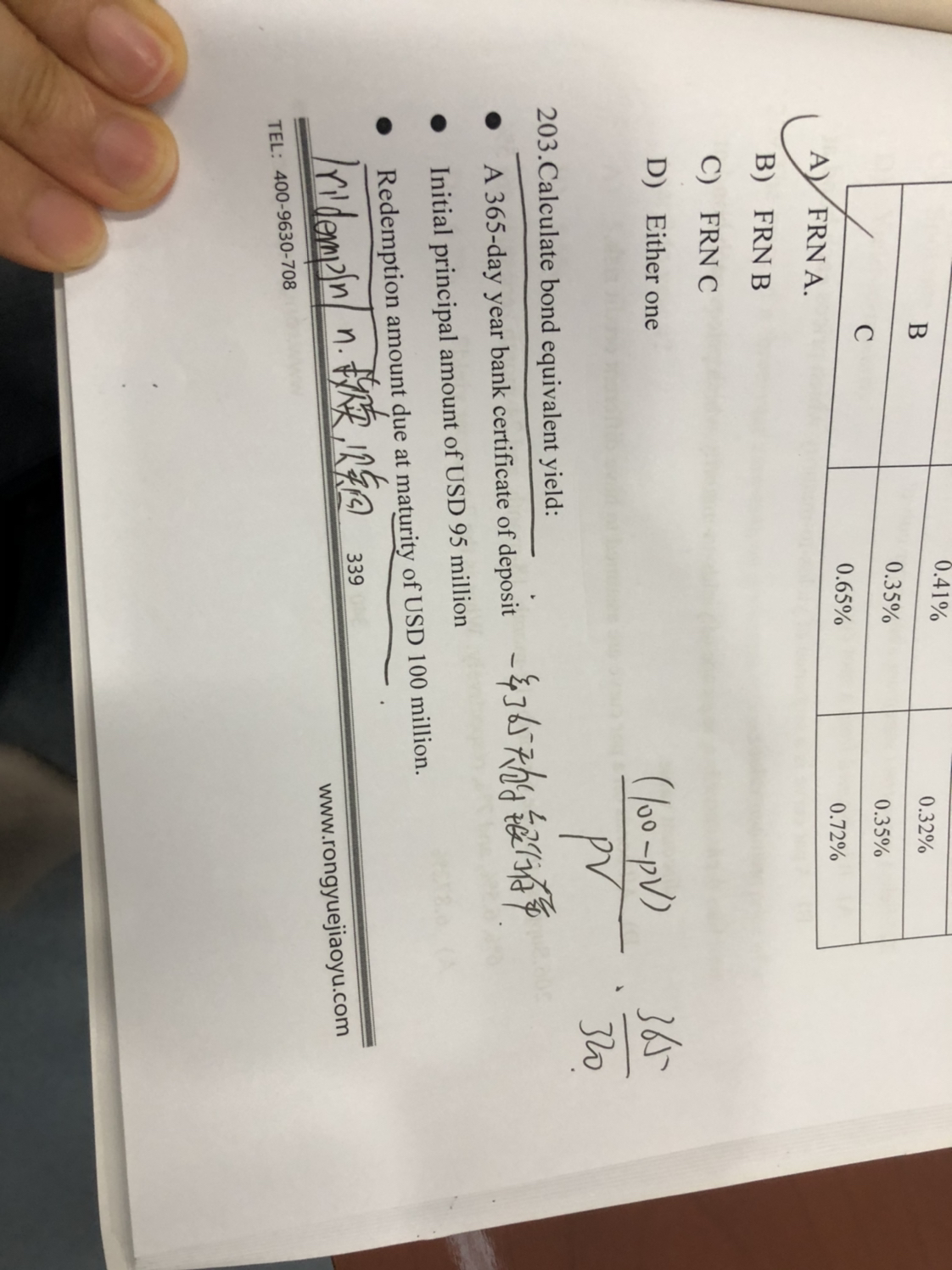 同学你好,这道题考察的是债券的等值收益率,属于超纲内容,新版习题册已经删掉,建议跳过。
