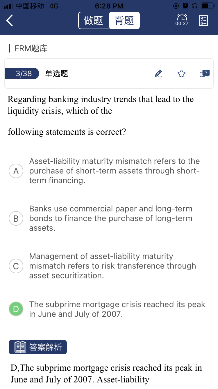 同学你好,次贷危机从2007年2月开始至年底达到顶峰,后来逐渐演变成金融危机,D选项说的是次贷危机,而不是金融危机,金融危机时2008年达到顶峰。