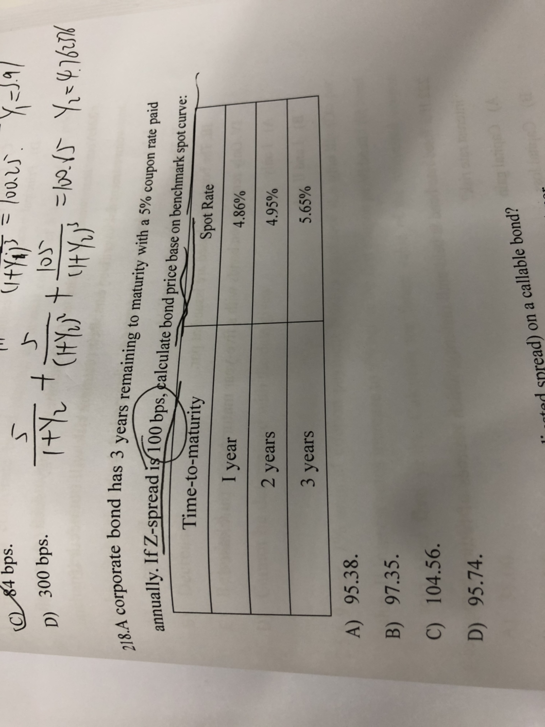 同学你好,这道题考察的是公司债,公司债因为有风险溢价,所以会存在风险利差,题中的即期利率是基准即期利率曲线,可以理解为不同期限的国债利率曲线。