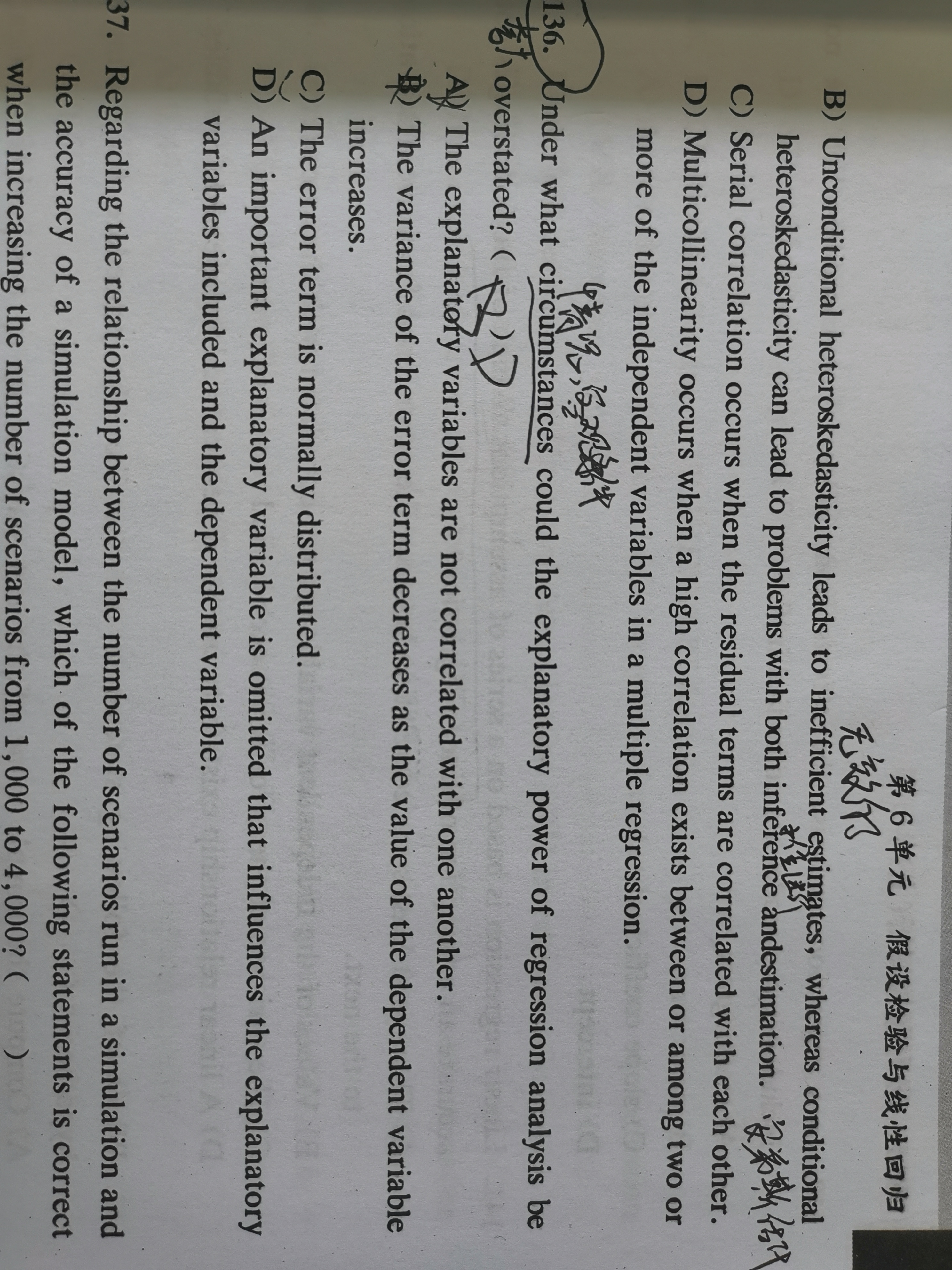 同学,这个题目有点不严谨了,掌握对于回归分析的解释力度R^2即可,不用过度纠结哈