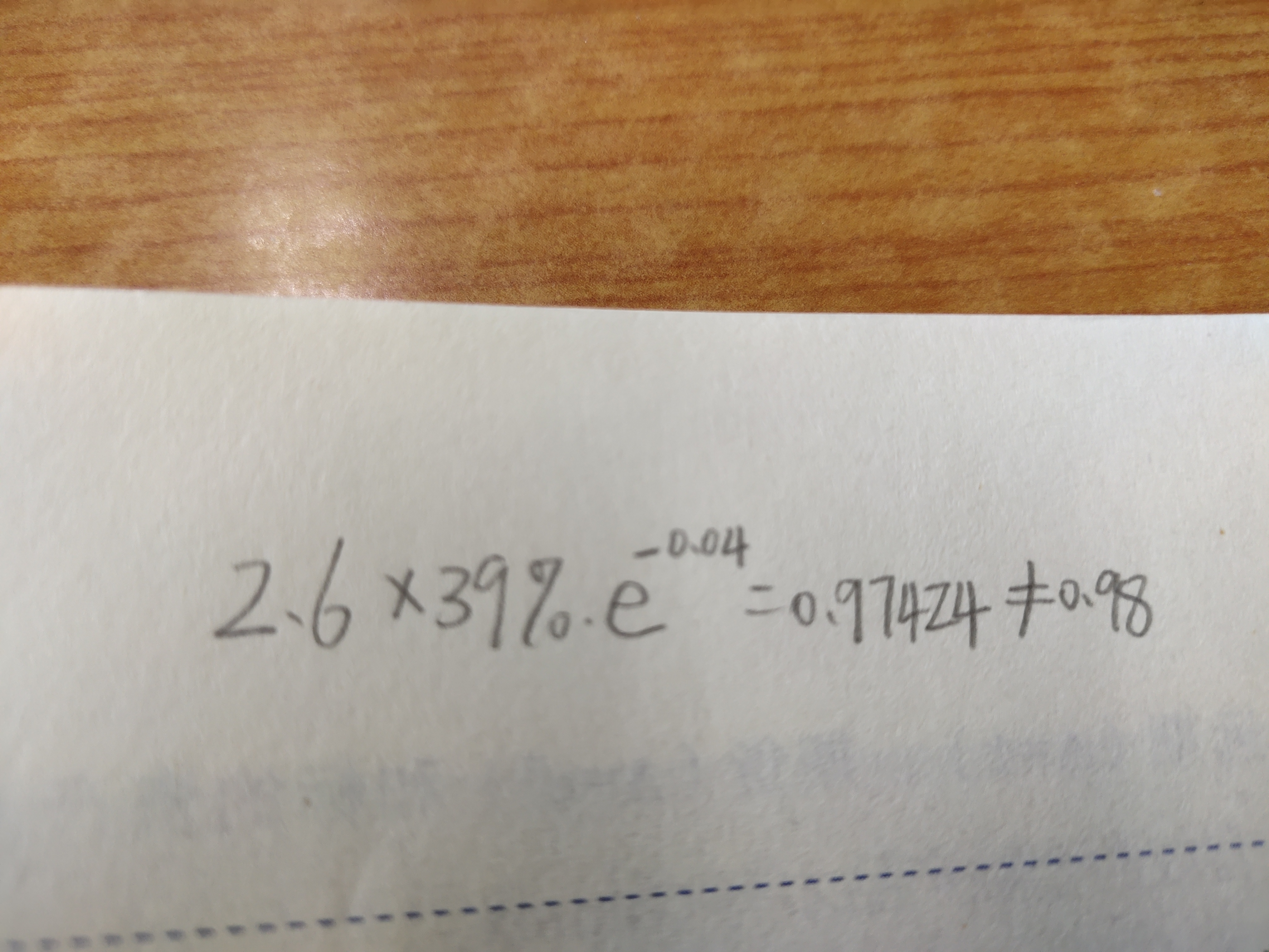 同学你好,你算的结果0.974跟答案0.98很接近,如果过程跟答案没区别的话,就是没有问题的。如果还有异议,可以把你的计算过程拍照发下。