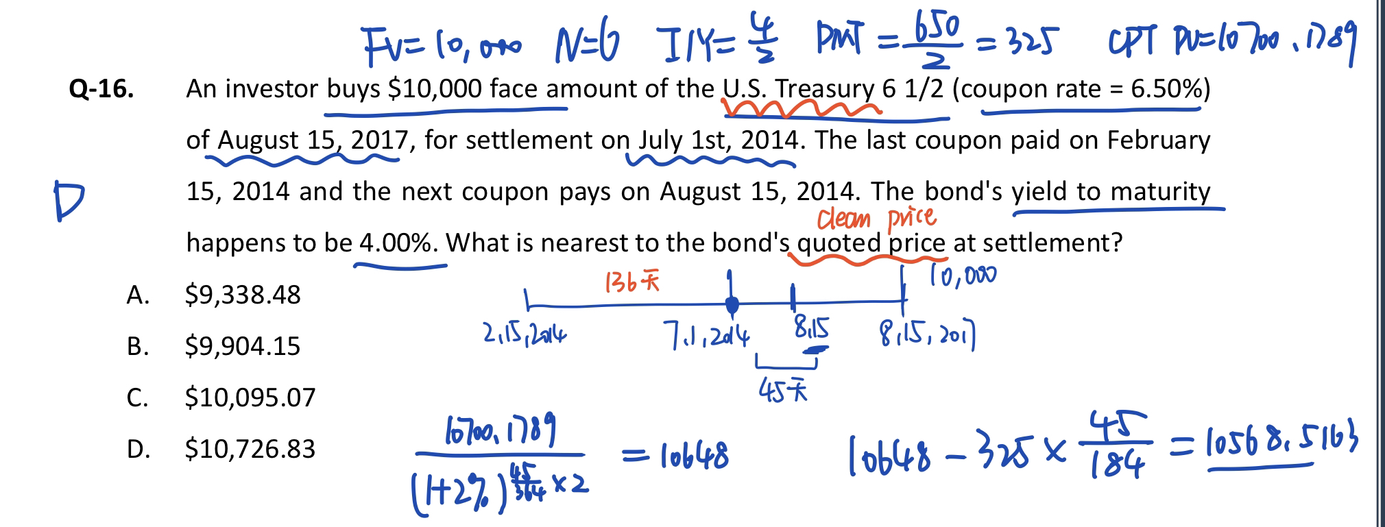 折现到那一天都可以,如果是折算到结算日之前,就需要加上应计利息,如果是折现到结算日之后,就需要减去应计利息。