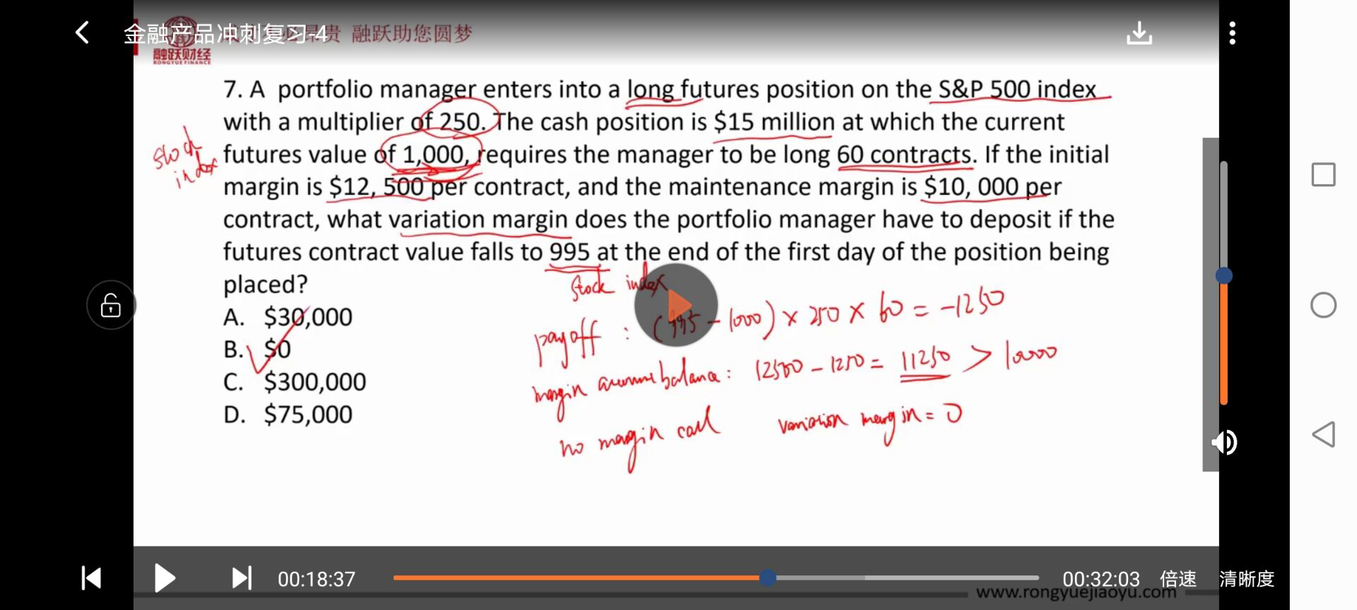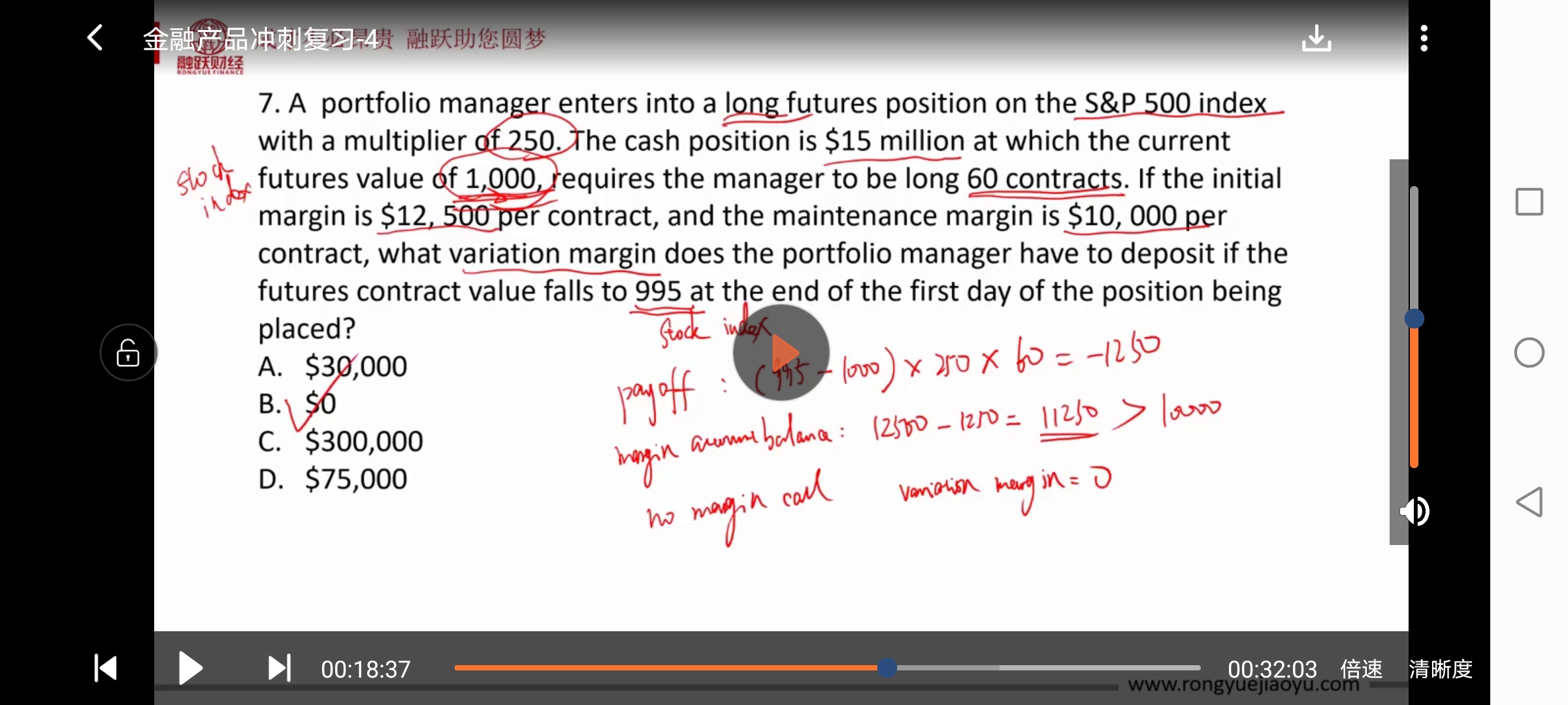 因为期货价格的下跌没有导致margin call ,所以变动保证金为0,这没有问题。