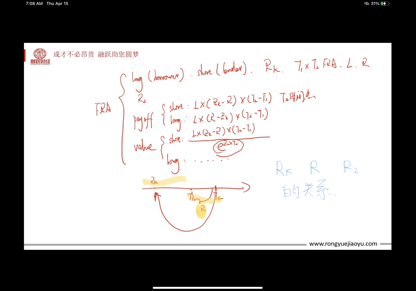 long一份远期合约就是在未来某一时刻以某一利率借入(borrow)资金,所以所long方也就是借入方。下面的R2应该是Rk,也就是远期合约中约定的远期利率。