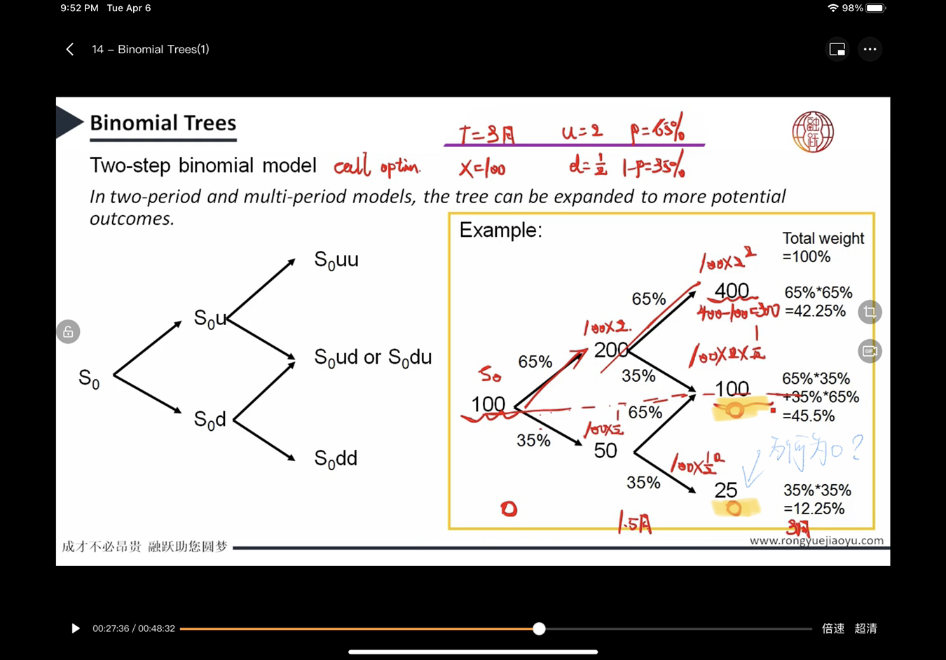 同学,图一:PMT是根据coupon rate来计算的,与I/Y没有关系哈;图二:用对冲工具来对冲利率风险,是构建投资组合使得整个投资组合的DV01=0,对冲比率就是对于对冲工具数量的确定,与时间没关系,关注的是DV01;图三:当市场价格为25执行价格为100时,看涨期权价值为Max(V-K,0)=0