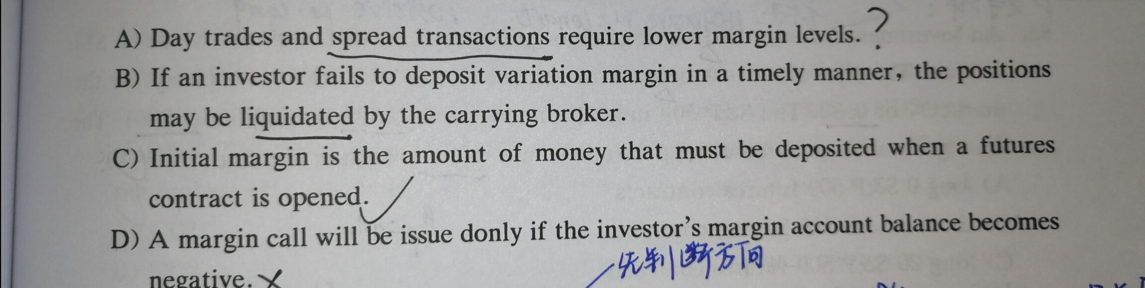 同学,A选项意思是日内交易和价差交易需要较低的保证金水平,是正确的说法哈,因为在日内交易和价差交易中,市场的波动较小,所以较低的保证金水平就可以了