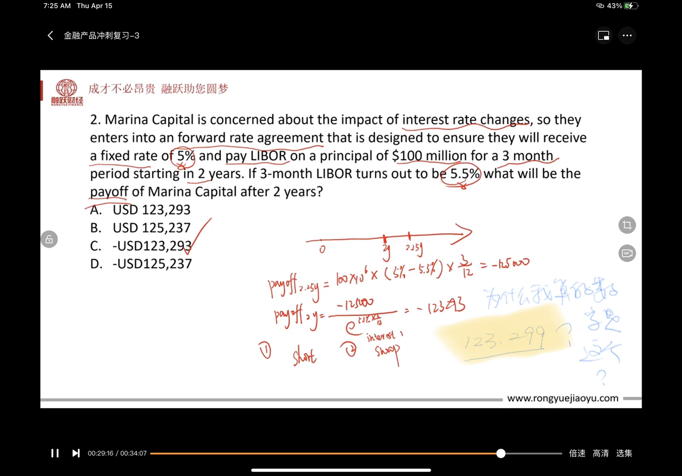 我是用的比较笨的办法,请老师指正。5.3 % * 3 / 12 = 2nd LN 算出了一个数,再用125000 +/- 去除以上一步的数