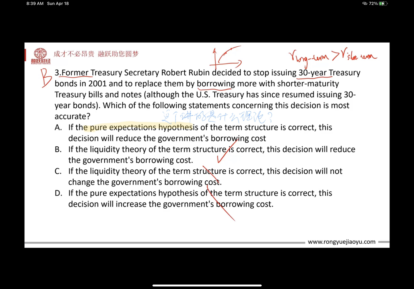 同学,对于Swap价值的估计就是收到的减去支付的;纯预期理论认为远期利率应该反映预期的未来短期利率,是用来解释利率期限结构的一种理论哈