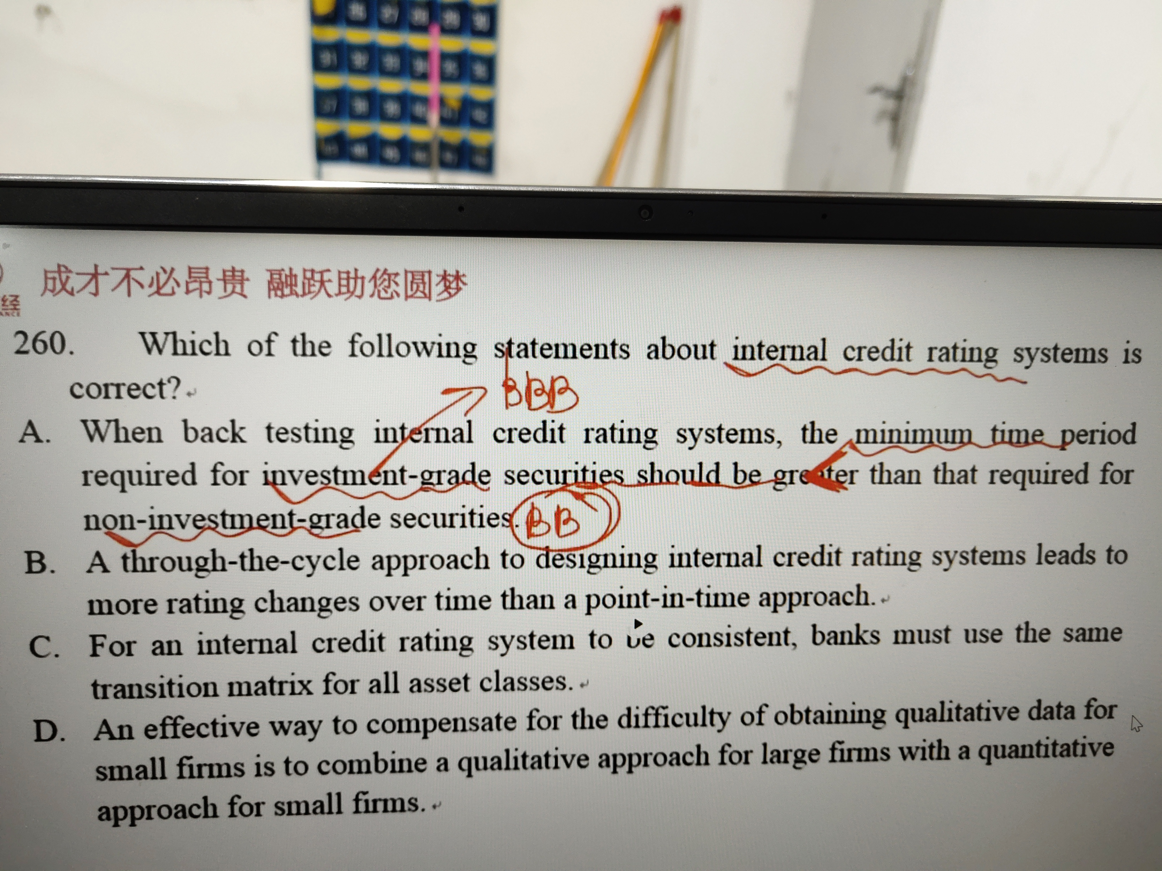 同学你好,A选项说的是因为非投资级的债券风险较大,预期收益较高,所以其期限也会相应较长,前后一一致的,反之,也可以说因为投资期限较长,所以其预期收益较高,违约风险也较大。