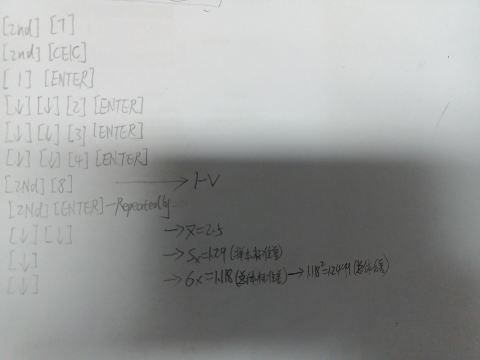 同学你好,这道题有两个点需要注意,第一,这道题总体只有四个可能的结果吗,所以就相当于是求总体的方差,第二,这道题让求的是方差而不是标准差,而用计算器算出来的结果是标准差,所以还要平方,详细操作过程参考图片。