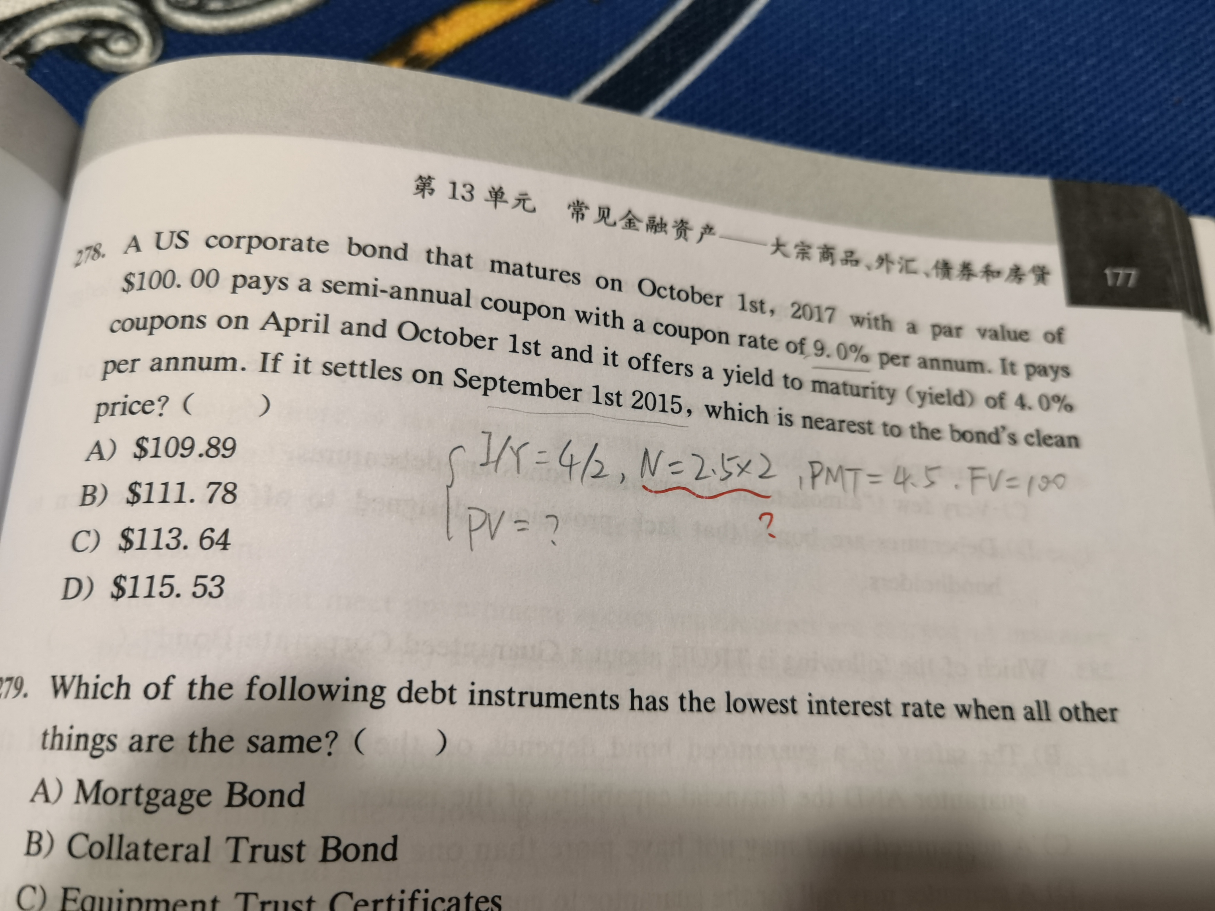 同学你好,这道题题干中的最后一行交割日应该是2015年四月一日。这样的话从交割日至到期日总共是2.5年,一年付息两次,所以总付息频次是5.