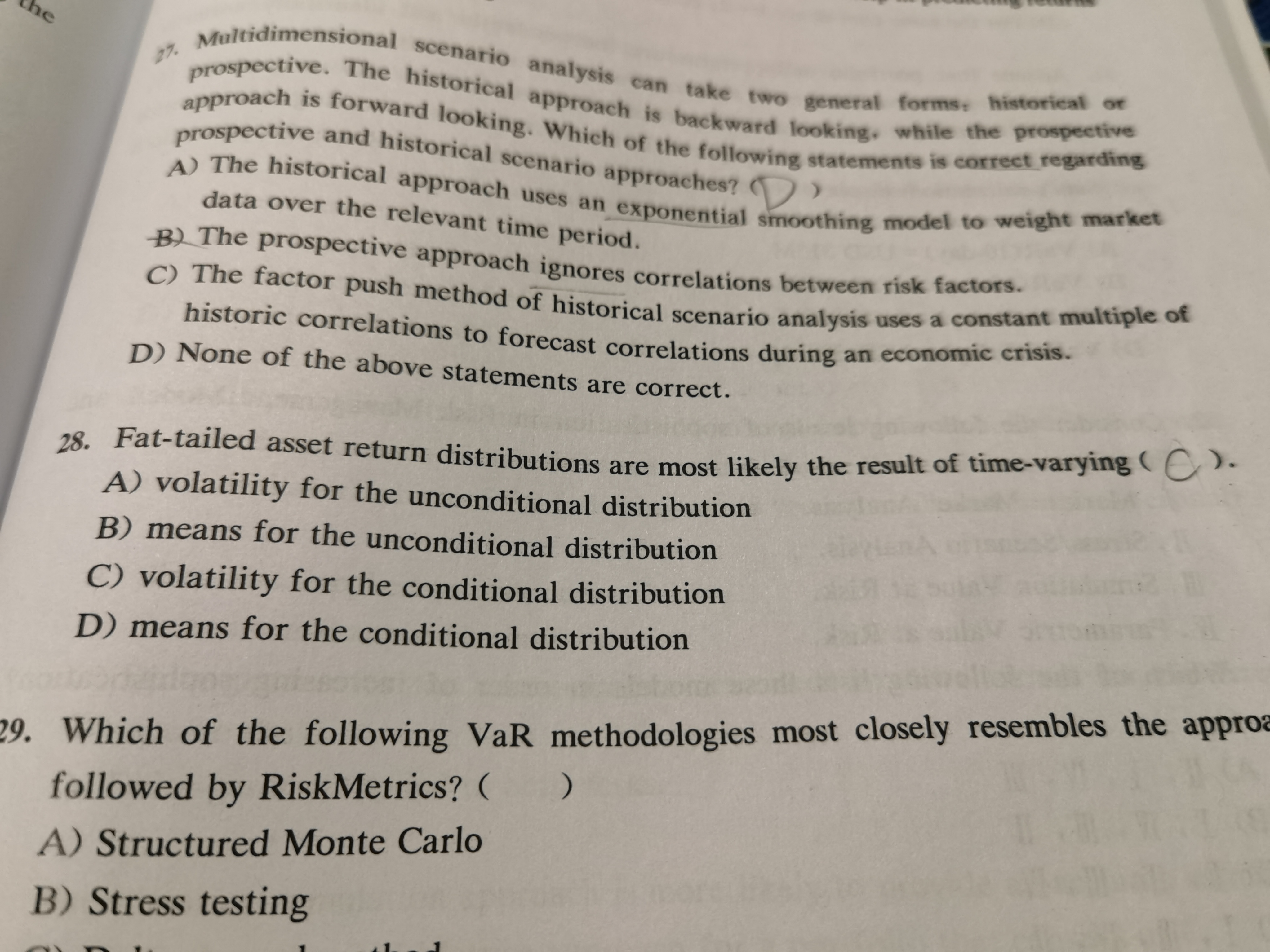 同学你好,这道题是notes上的原题,考试肯定不会考到,同学只需要了解条件分布和非条件分布的定义,以及机制转换模型采用的是条件正态分布且能够处理肥尾问题就可以了。
