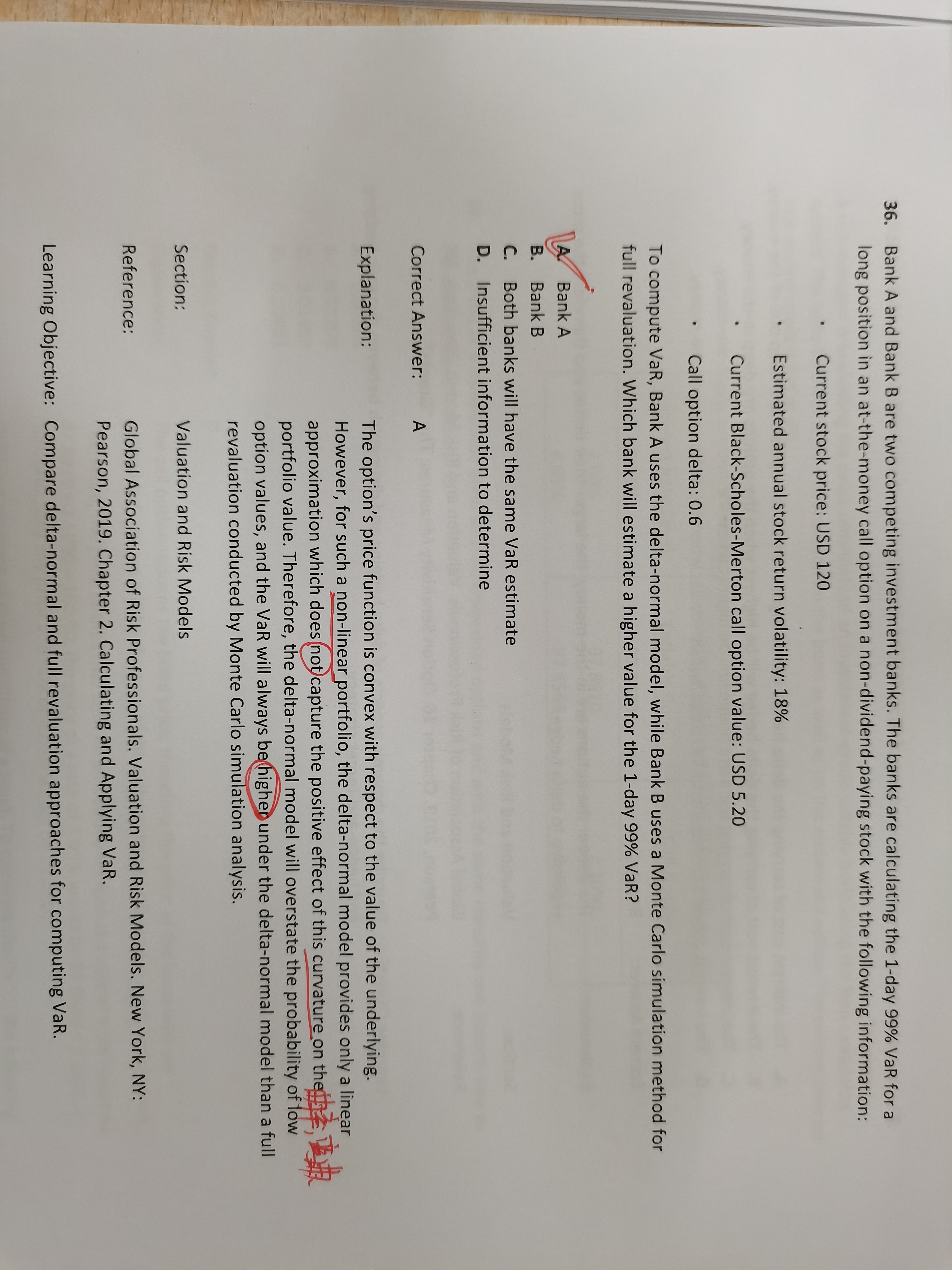 同学你好,期权的var值全值法可以理解为delta-gamma法的升级版,即考虑了全部的影响因素,不仅仅是考虑了delta和gamma的影响,又因为delta-normal法仅仅考虑了一阶因素delta,没有考虑gamma二阶因素,而在delta-gamma法计算VAR公式是=delat*deltay-1/2*gamma*deltay^2,所以单纯用delata-normal法(计算VAR公式是delat*deltay)是高估的