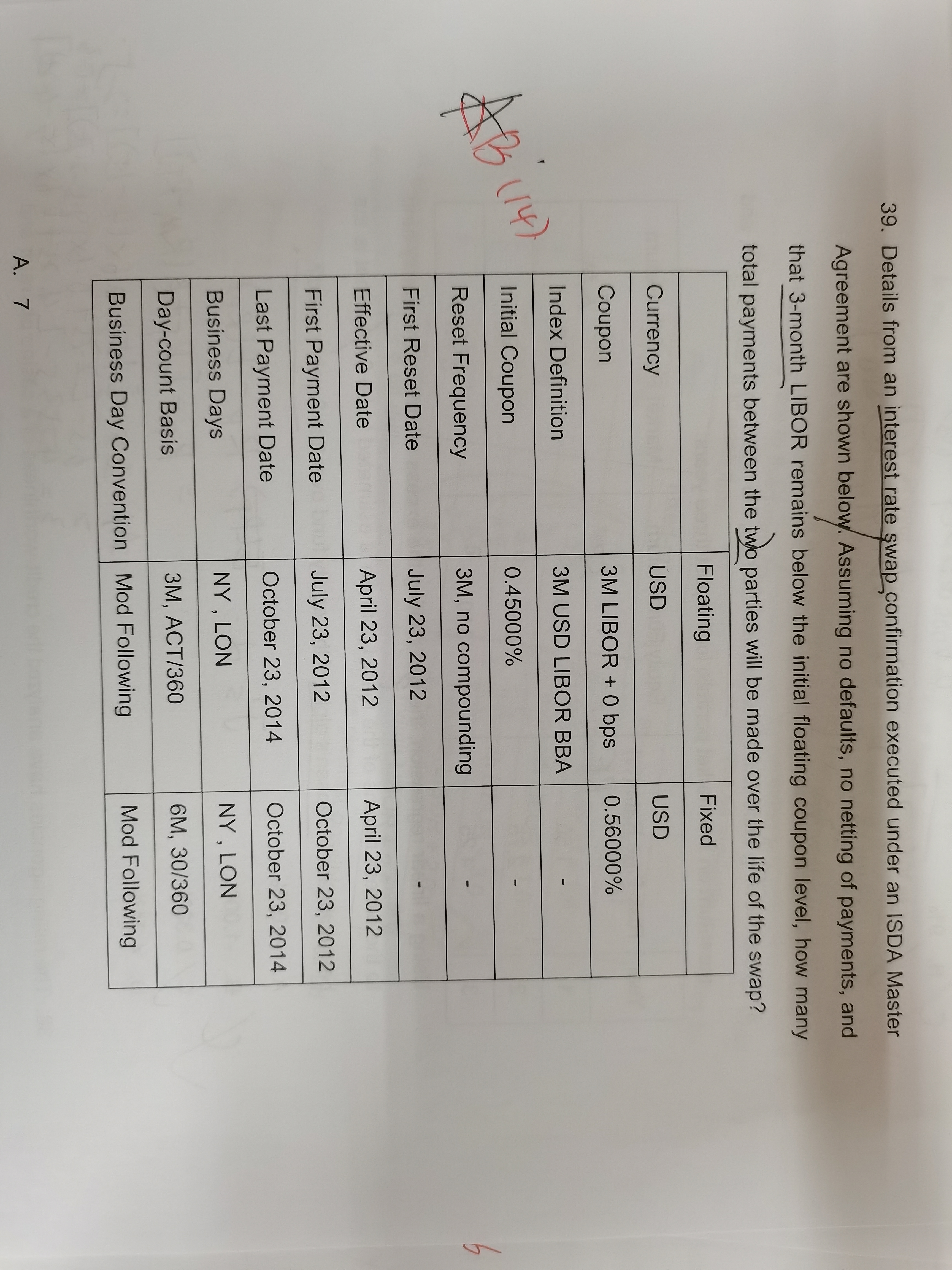 同学你好,题目中的表格就是一个互换合约,题目让求期间总交换次数,所以只用关注首次互换和最后互换日期及互换频率即可,其他信息不必关注。