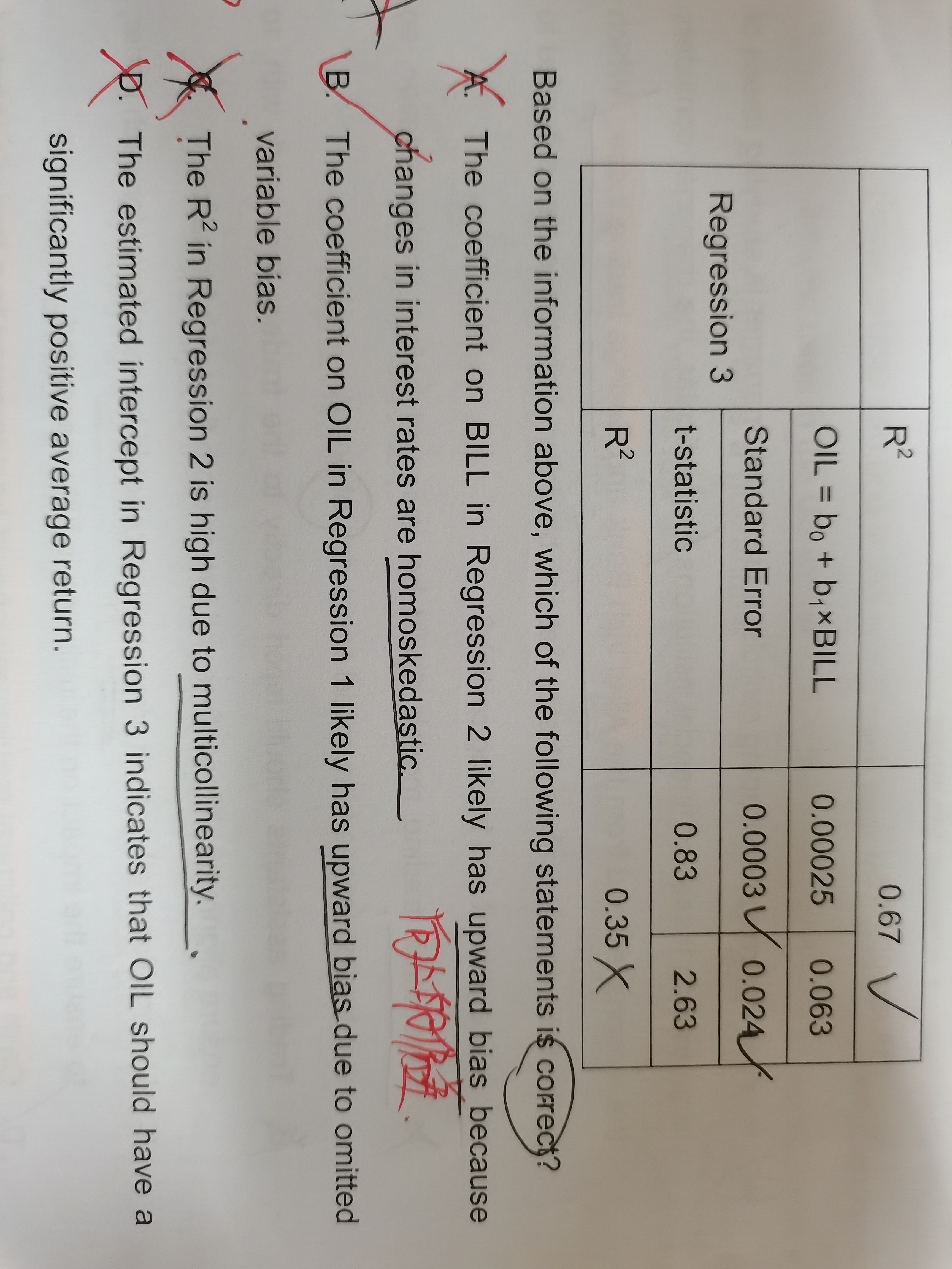 老师 a选项的是否同方差还有upward如何根据表格判断