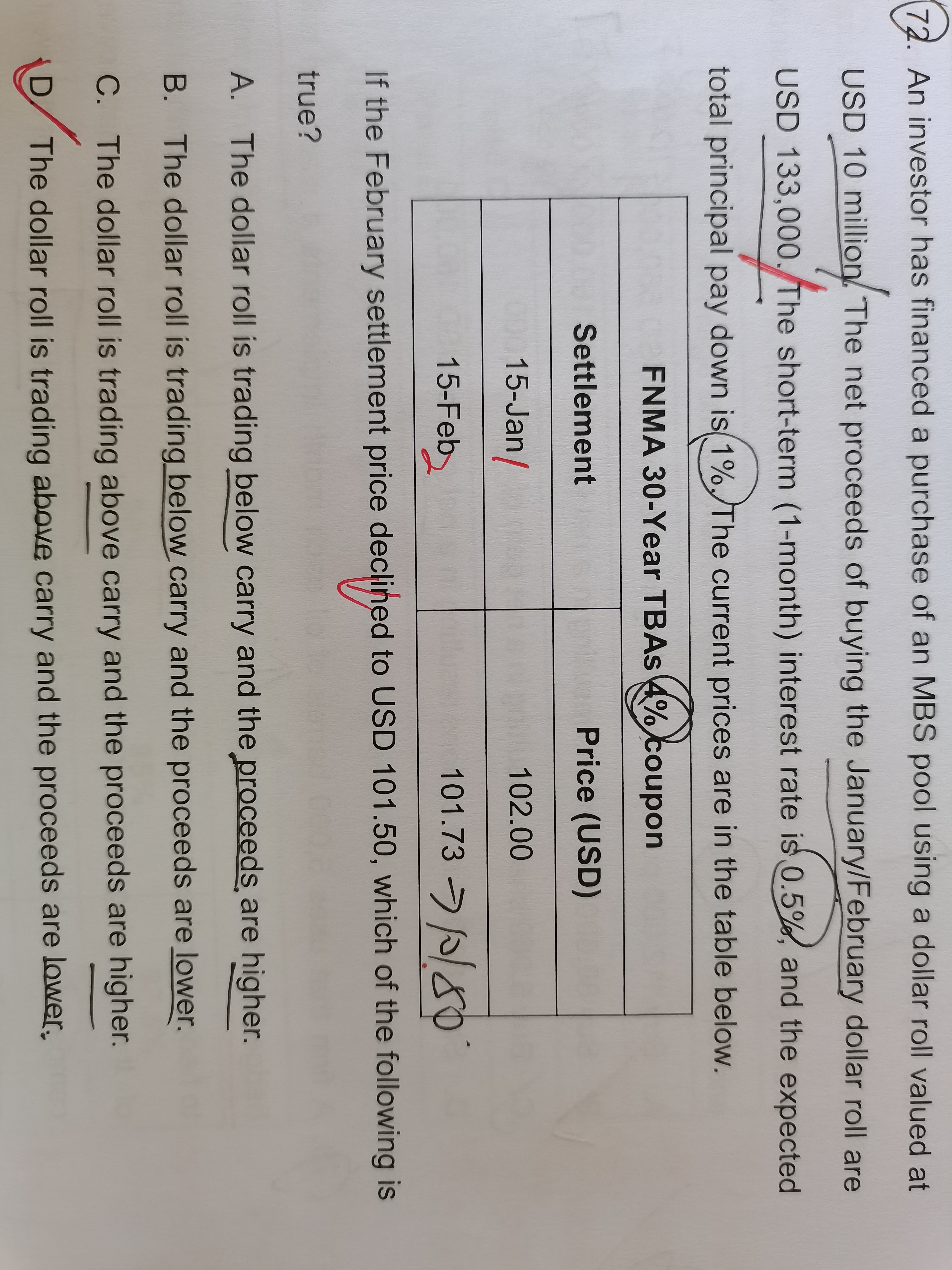 同学你好,这道题考察的是dollar roll的计算,参考图片理解