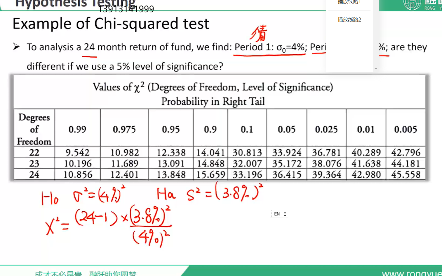同学你好,对的,Ha应该是σ^2≠4%^2