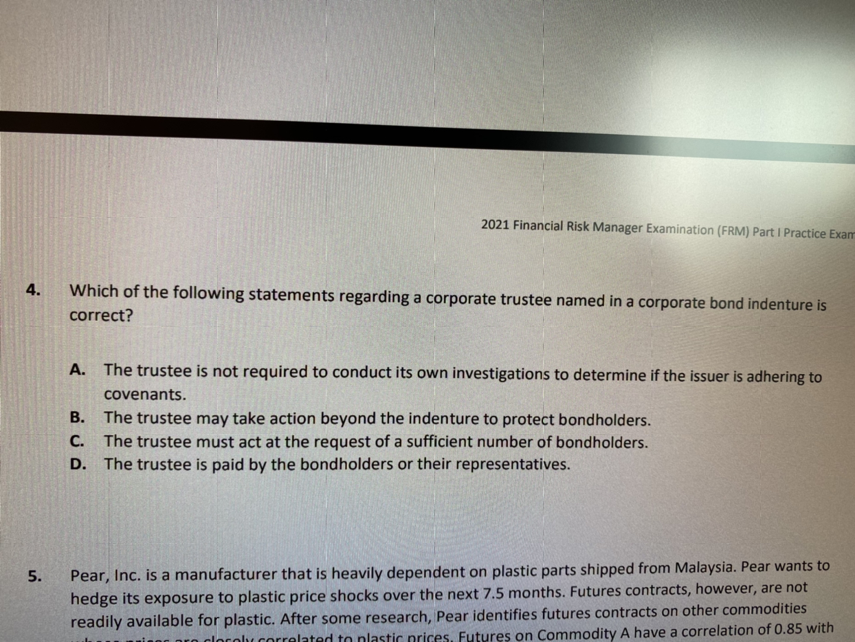 同学你好,公司信托人(corporate trustee)保护的是投资者即债券持有人(bondholder)的利益(责任包括对债券发行人是否履行契约中的各项条款等),而corporate trustee的报酬是由债券发行人(issuer)支付的,所以会存在潜在的委托代理问题。