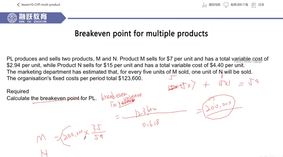 同学,breakeven in sale是要使用销售额的而不是单纯的数量。