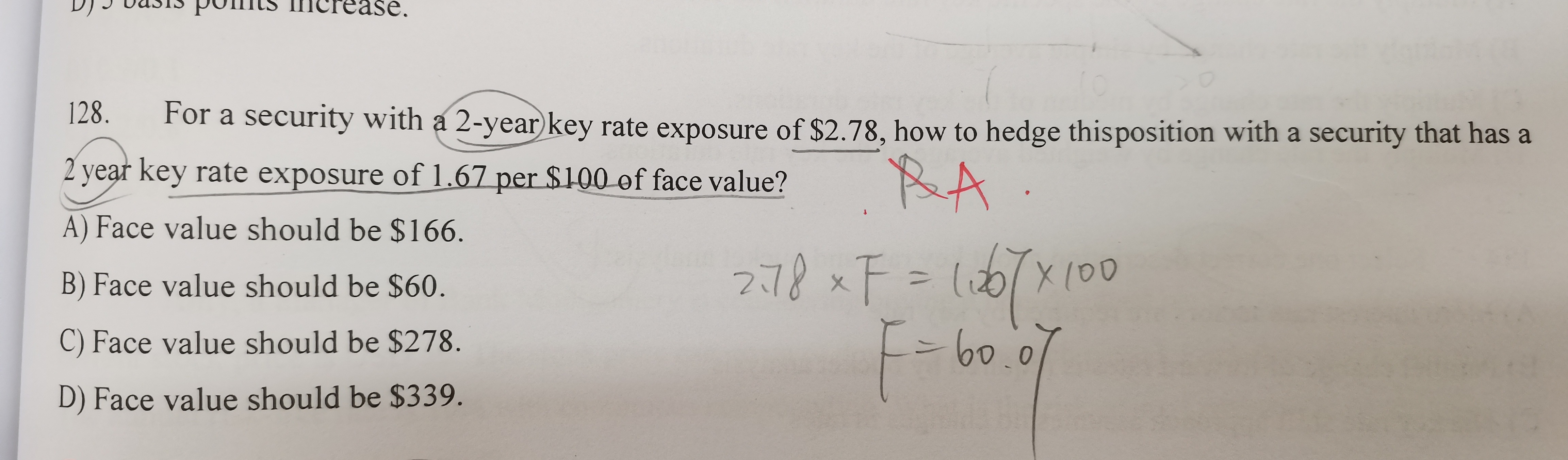 同学你好,这道题题干中的面值100指的是被对冲敞口的面值,让求的是对冲工具敞口的面值。
