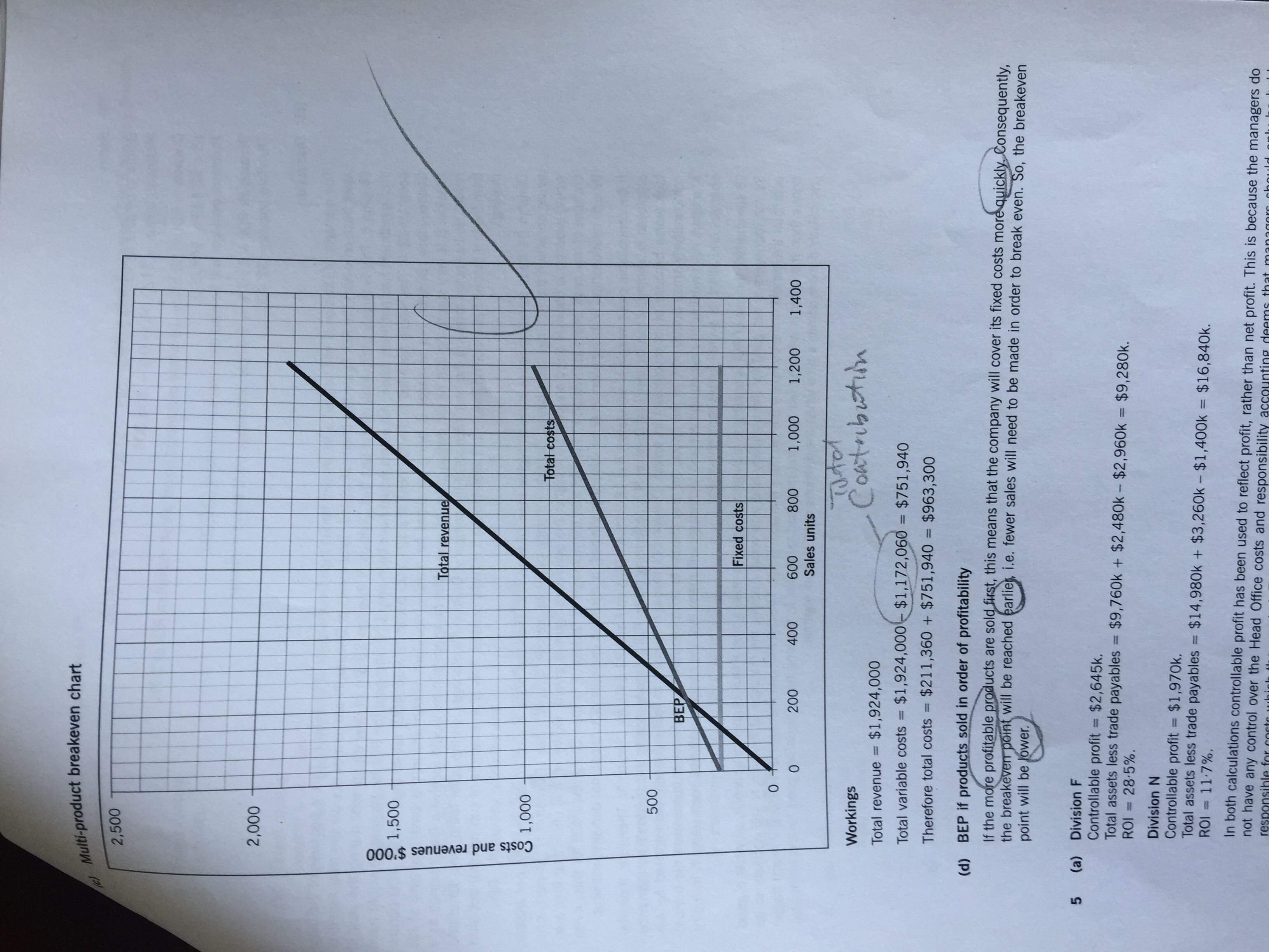 老师好。如题及答案:请问,答案b问的346,947表示的三个产品一起卖的营销策略下达到break-even的总收入对吧?那么,如何根据这个收入求出对应的该策略下的breakeven unit呢?也就是我想具体算出来这个unit。这点对我很重要。其次,答案c文中的图也是反应mix sale strategy下收入与成本的大致情况么?该图上的breakeven point unit是怎么算的呢???