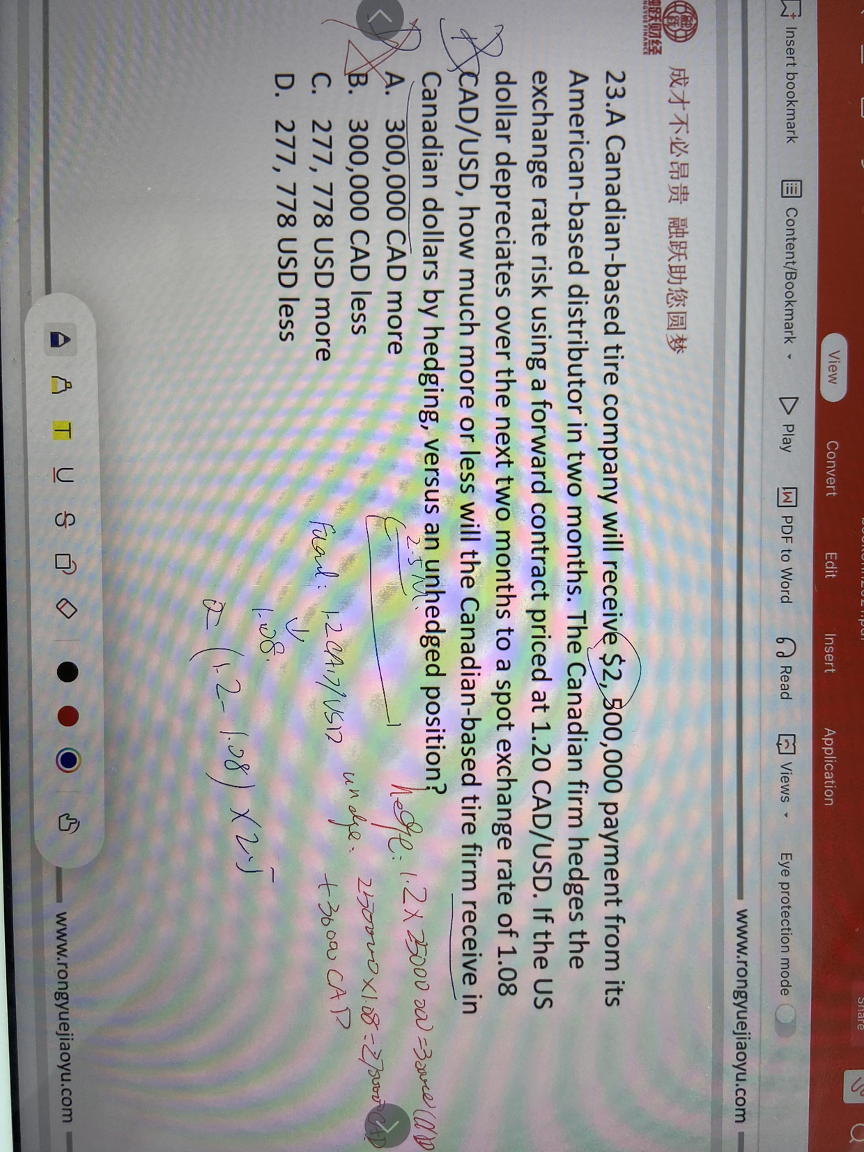 同学你好,题干最开头已经表明是一家加拿大公司,所以收到的钱要转成加元。