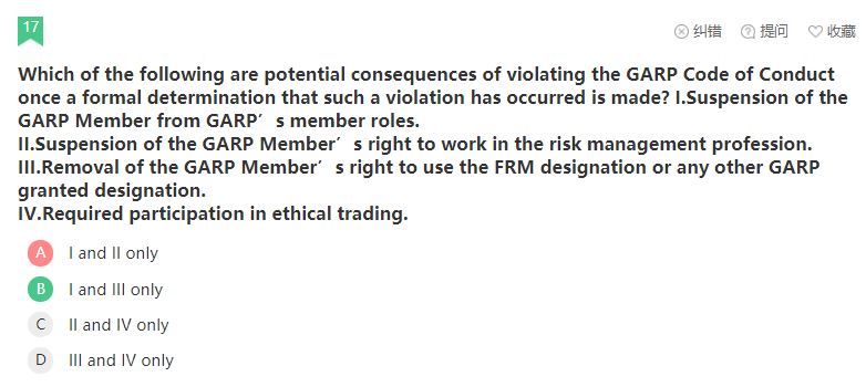 同学你好,I的说法是暂停其会员资格,II的说法是暂停其从事风险管理职业的权利,garp协会对说法I是有权利,对说法II没有权利,因为garp协会不是政府机关。