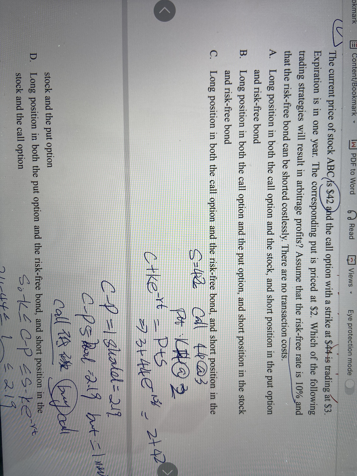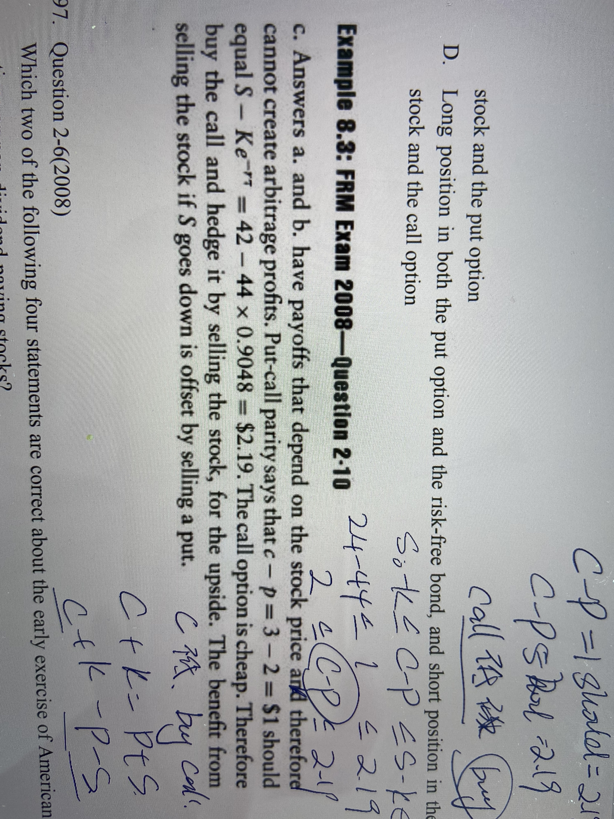 同学你好,这道题考察的是利用期权平价公式套利,参考图片理解