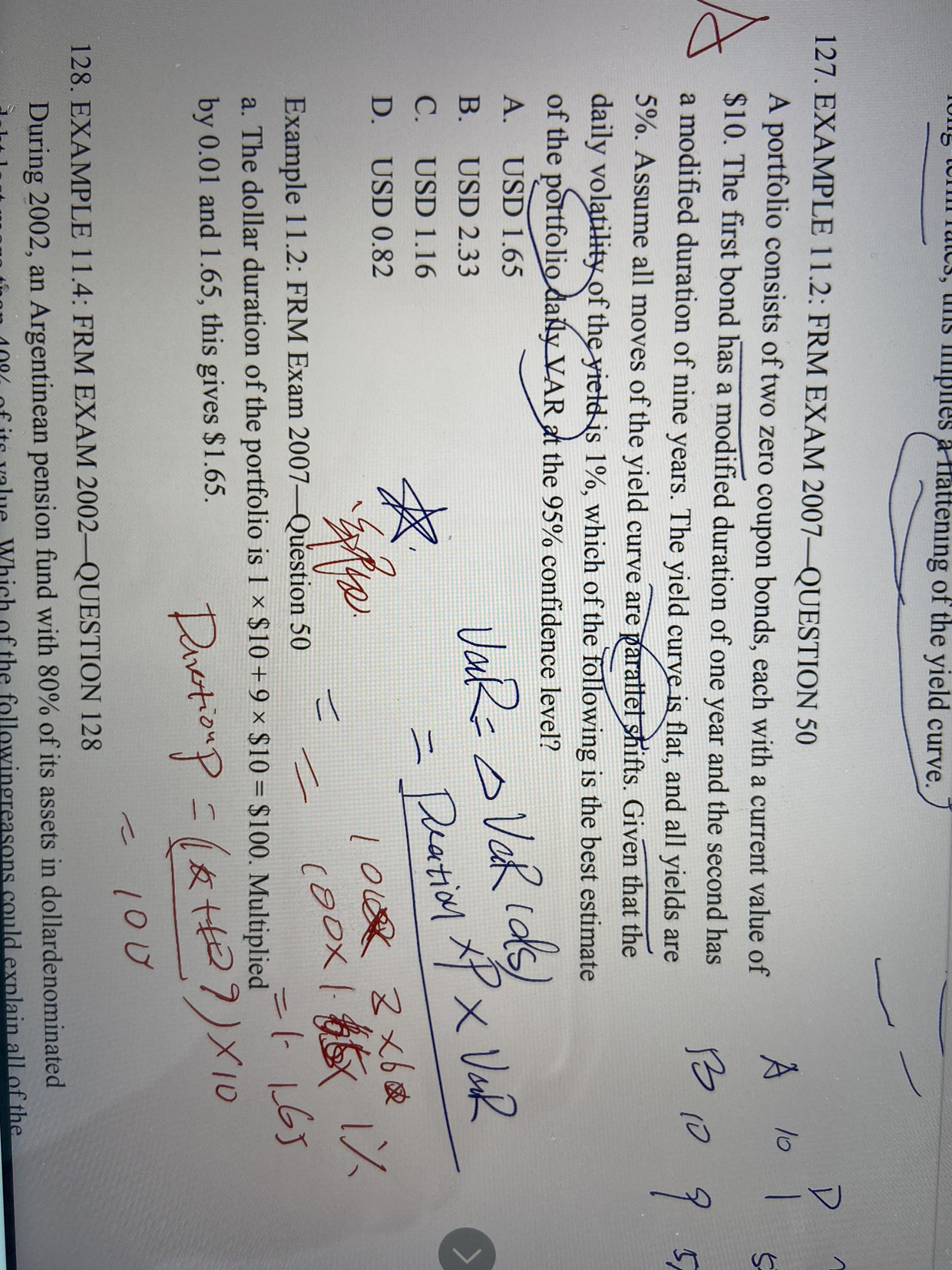 同学你好,如果题目中给出的资产组合中每个资产有价格或价值,直接用价格或价值乘就可以了,计算出来的结果跟你说的考虑权重的方法结果是一样的(1*0.5+0.5*9=5,VaR=1.65*0.01*5*(10+10)=1.65)