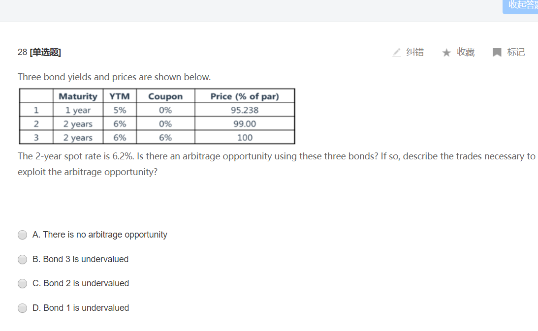 通过1和2构造出3的现金流,0.06*95.238+1.06*99=110.65428,大于3的100,所以3 被低估了