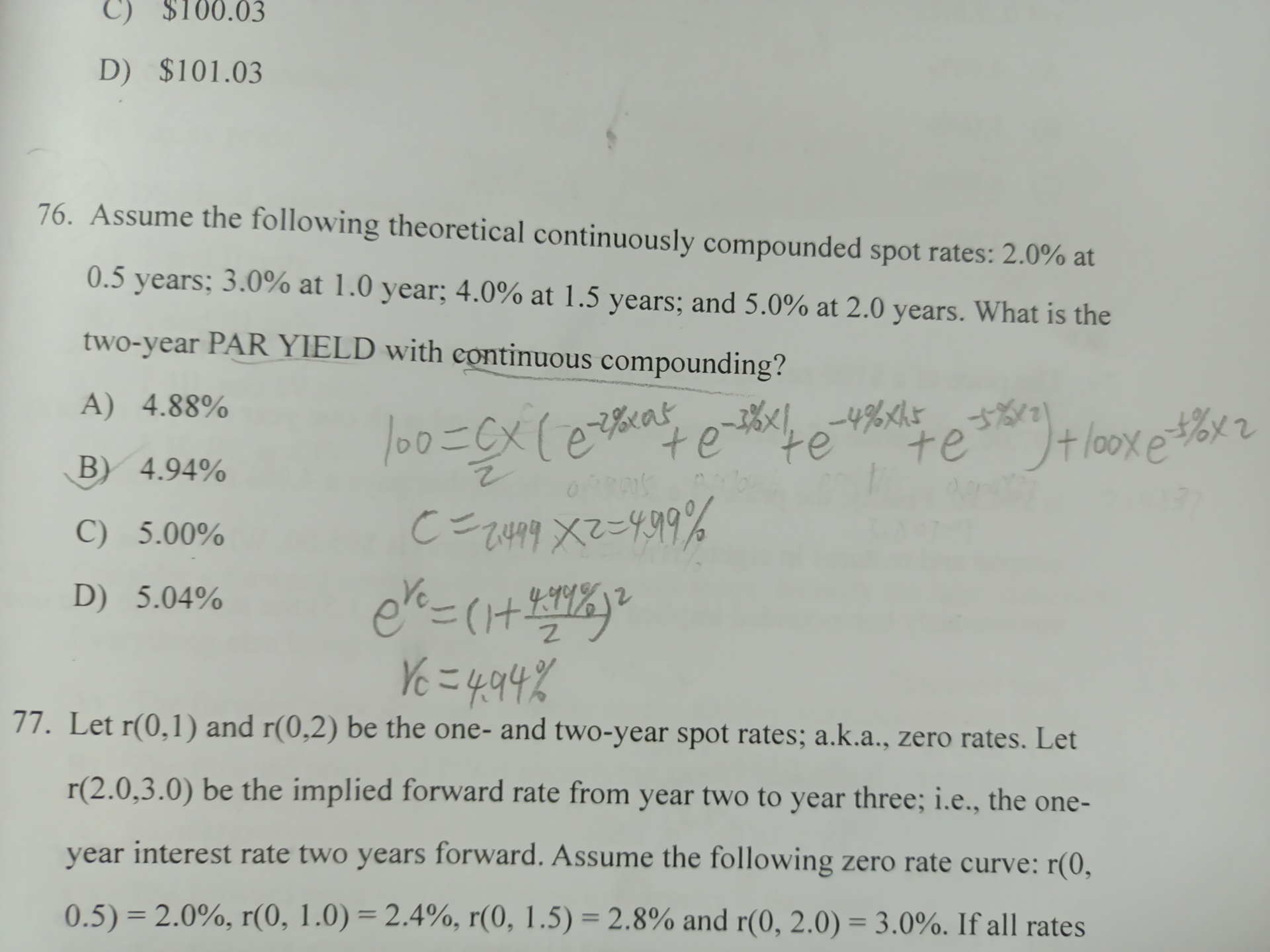 同学你好,第一步就是根据par yield的定义来计算出par yield ,然后再用对其进行连续复利进行转化。