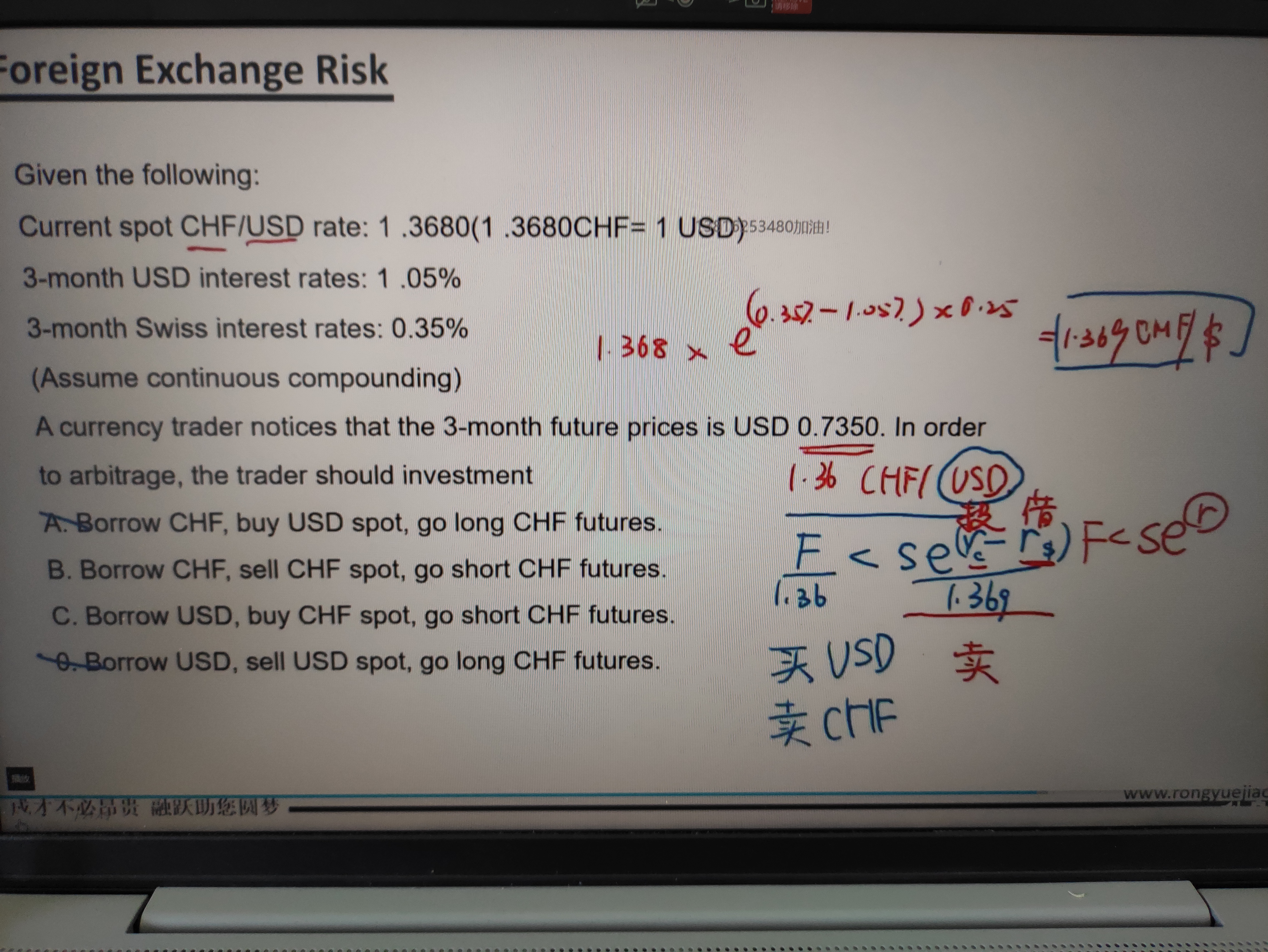 同学你好,从题干中可知1美元等于1.3680瑞士法郎,说明美元比瑞士法郎值钱,其利率也比瑞士法郎高,这符合经济学常识,汇率高的货币通常利率也高。