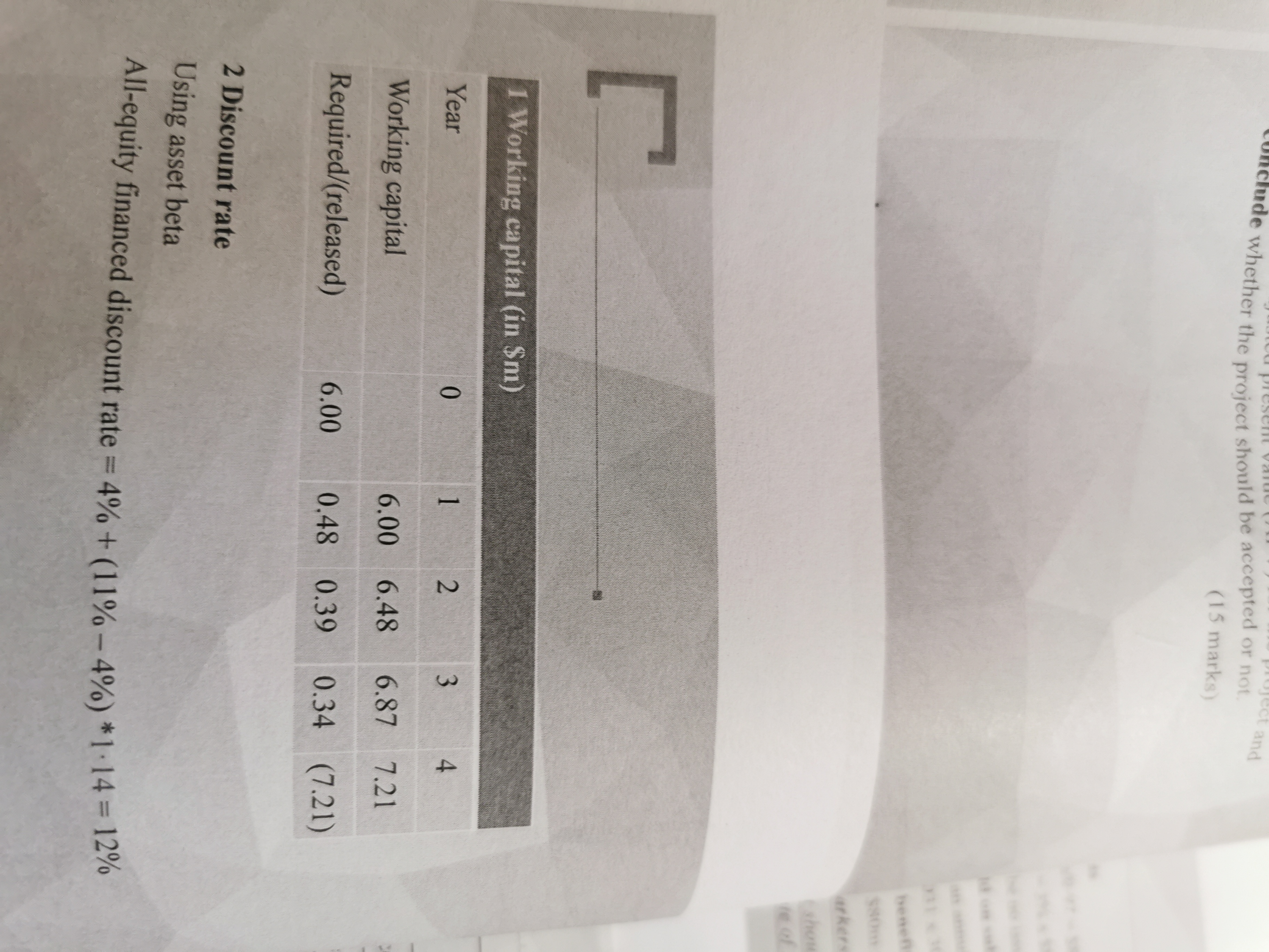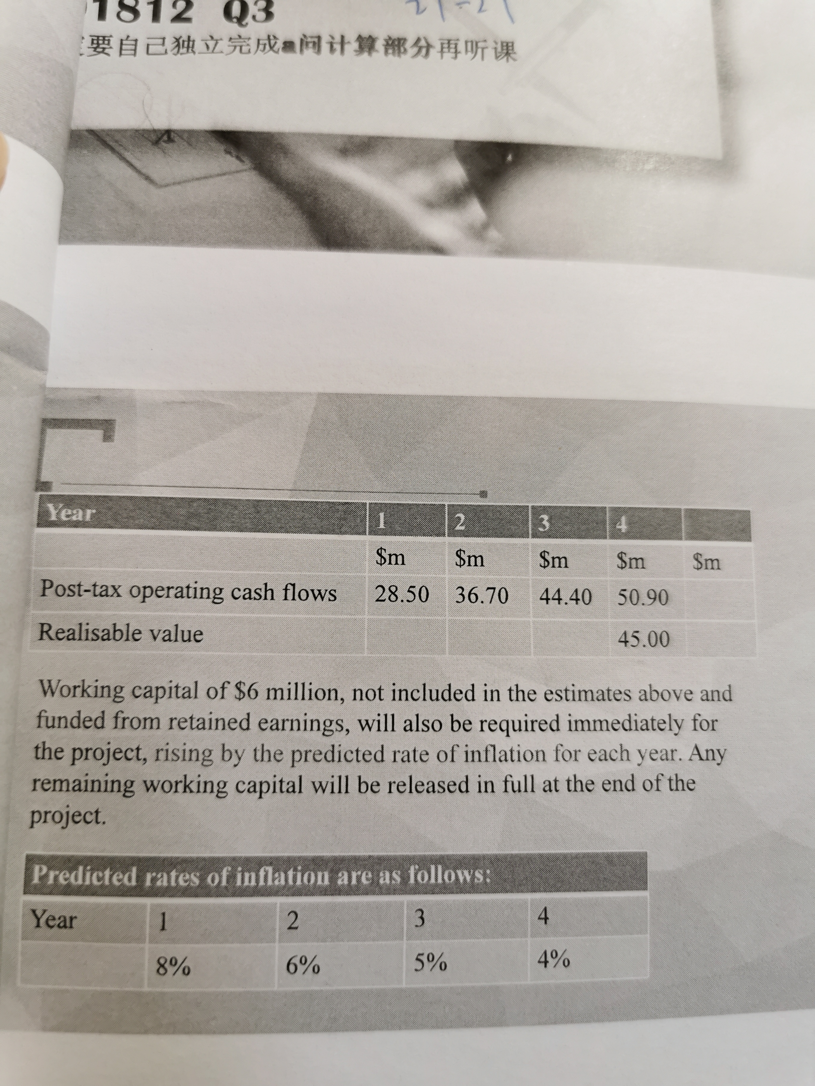 同学你好,我们那个是year 0不是year 1 请看清答案哦,我们在0时刻需要的,并且在NPV的formal中 我们的working capital是addition WC才是增量的现金流是我们需要的,所以我们year1的require WC=year 1 WC-year 0 以此类推 这个在上课的时候老师有讲过,并且我们F9也有学习过哈