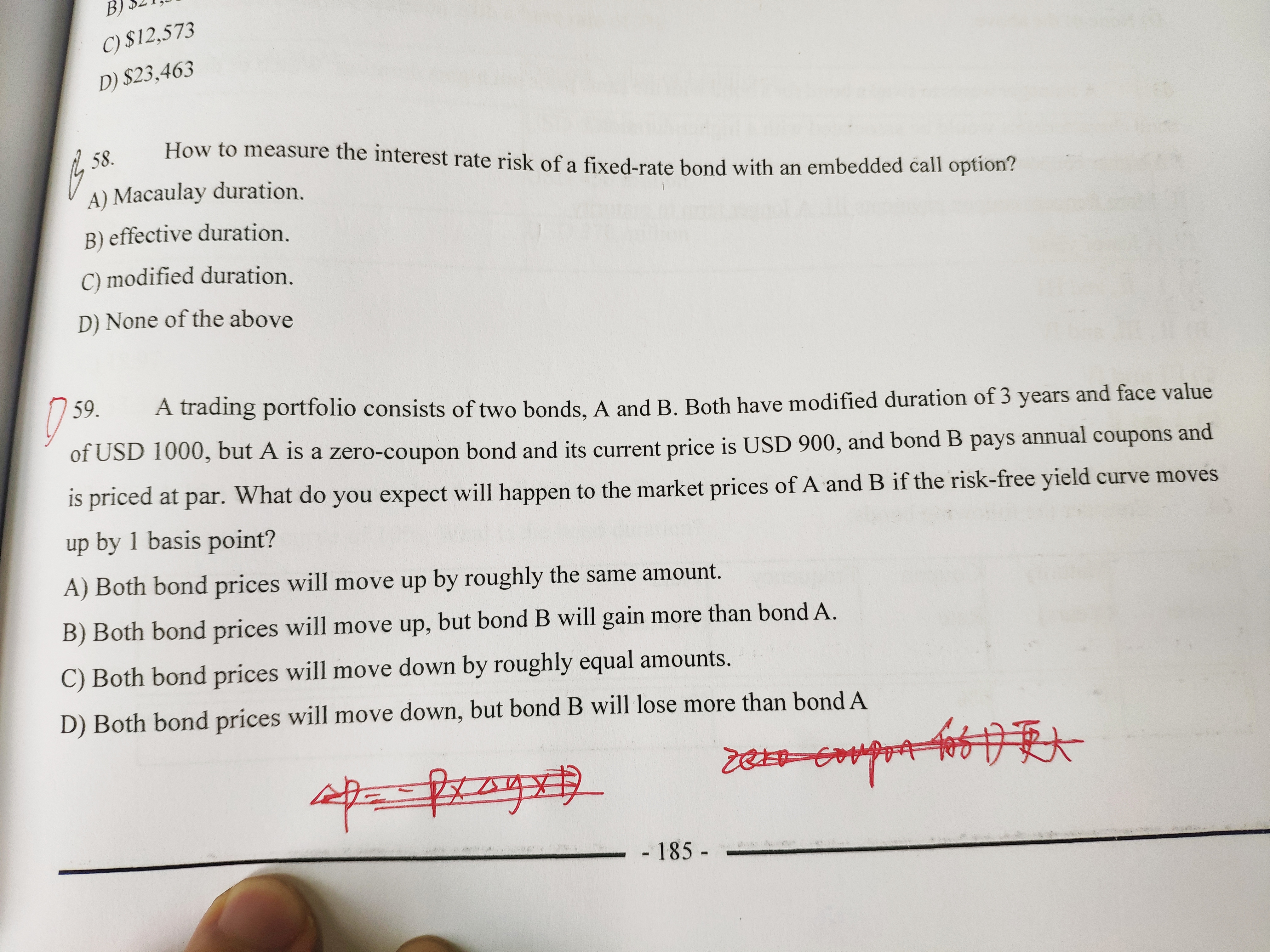 同学你好,根据利率变动对债券价格变动的影响计算公式:deltaP=P*D*deltay,根据题意两个债券的D和deltay都相等(此处的D为修正久期),而B债券的价格比A债券的价格高,所以当利率向上变动一个基点,B债券价格下跌的更多。