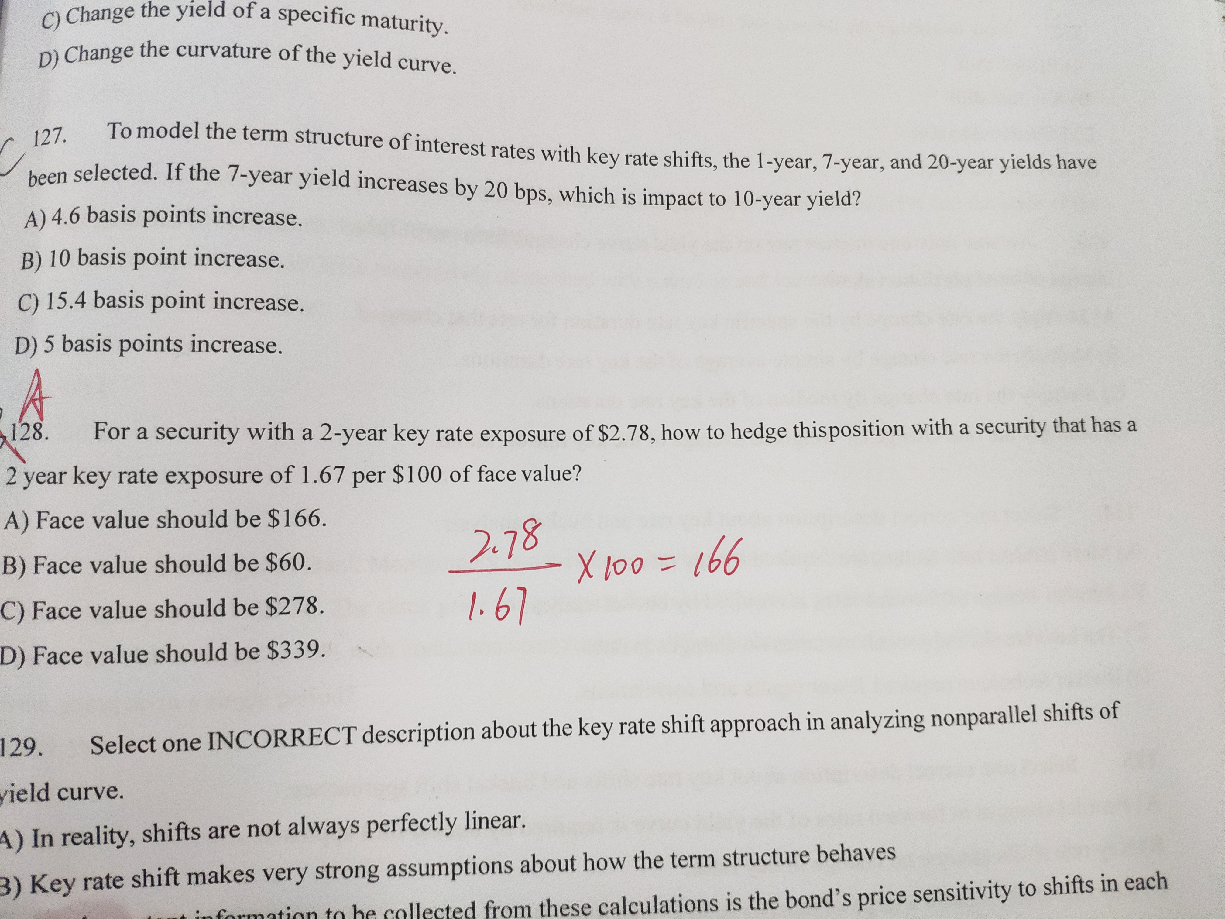 同学,题干意思是当前需要对冲的关键利率头寸是2.78,对冲工具是每100面值有1.67的关键利率头寸,让我们求多少面值的对冲工具可以对冲当前的关键利率头寸,也就是2.78/1.67*100得到正确答案哈