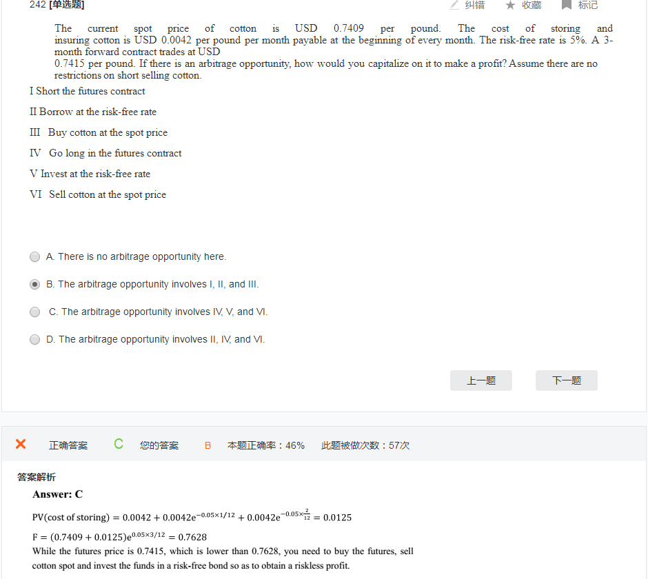 给到的future price 价格低于用spot cost 计算出来的理论价格,说明future price被低估了,所以应该买的是future 卖出的是spot
