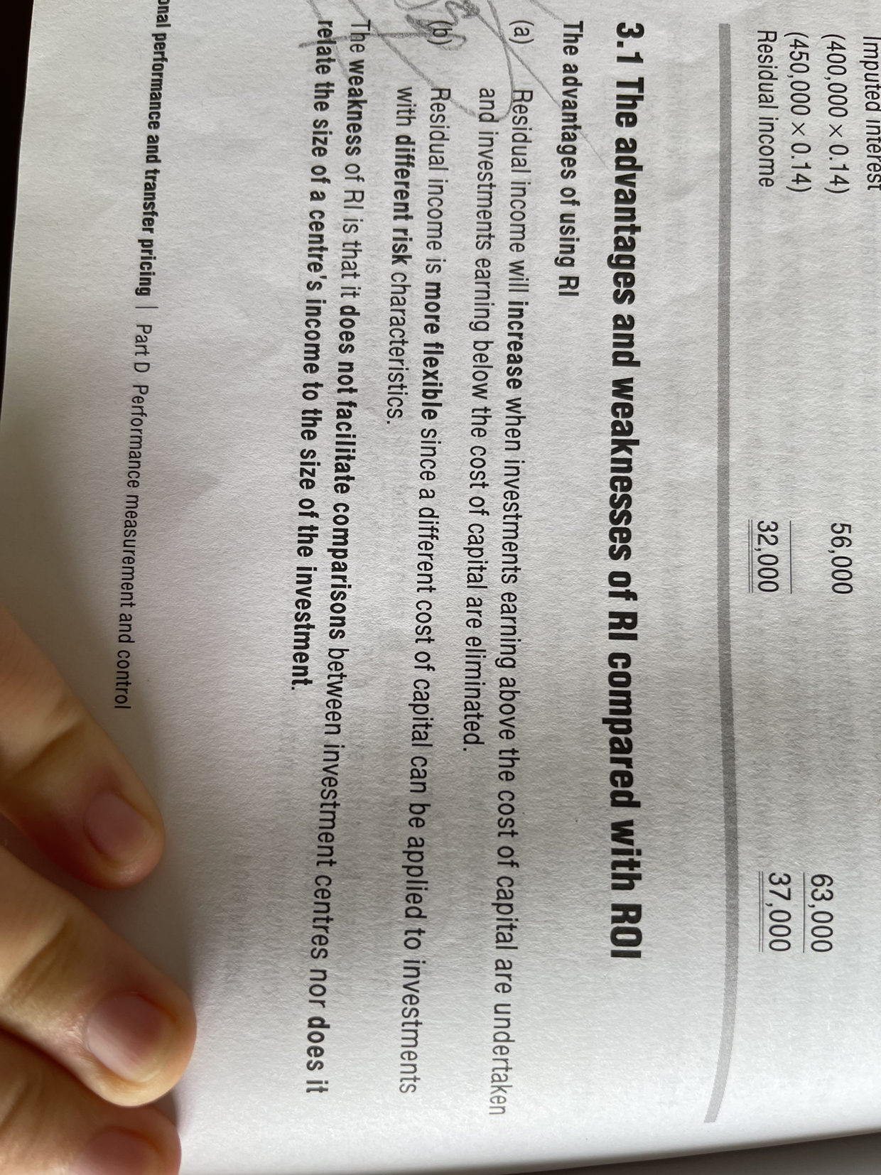 请问investment earning具体指啥?其次,B中是不是意味着不同的cost of capital会算出不同的RI?如果是这样,为什么说RI灵活了?就是这一句话如何理解,能举个例子吗,谢谢。