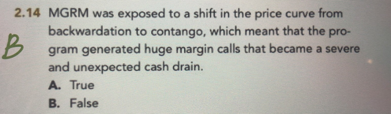 同学你好,根据题干中margin call说明是期货交易,期货交易有保证金制度,一旦市场变动导致亏损,会引发margin call,催缴保证金,如果没有按时补足保证金,则强行平仓,锁定风险损失,所以不会发生严重非预期的亏损(类似于穿仓风险)。
