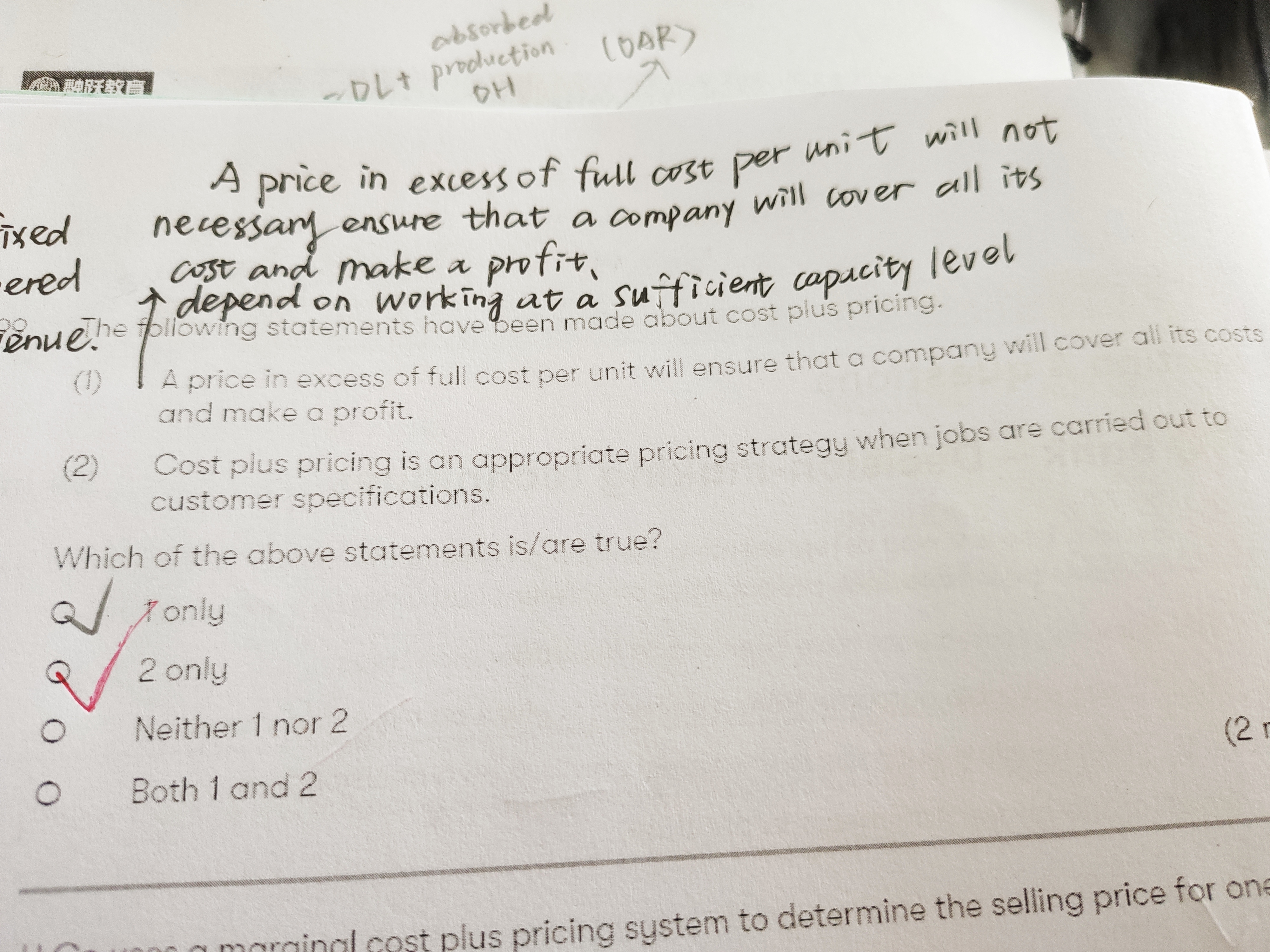同学,成本加成定价法比较适合客户有特殊要求私人定制时使用。