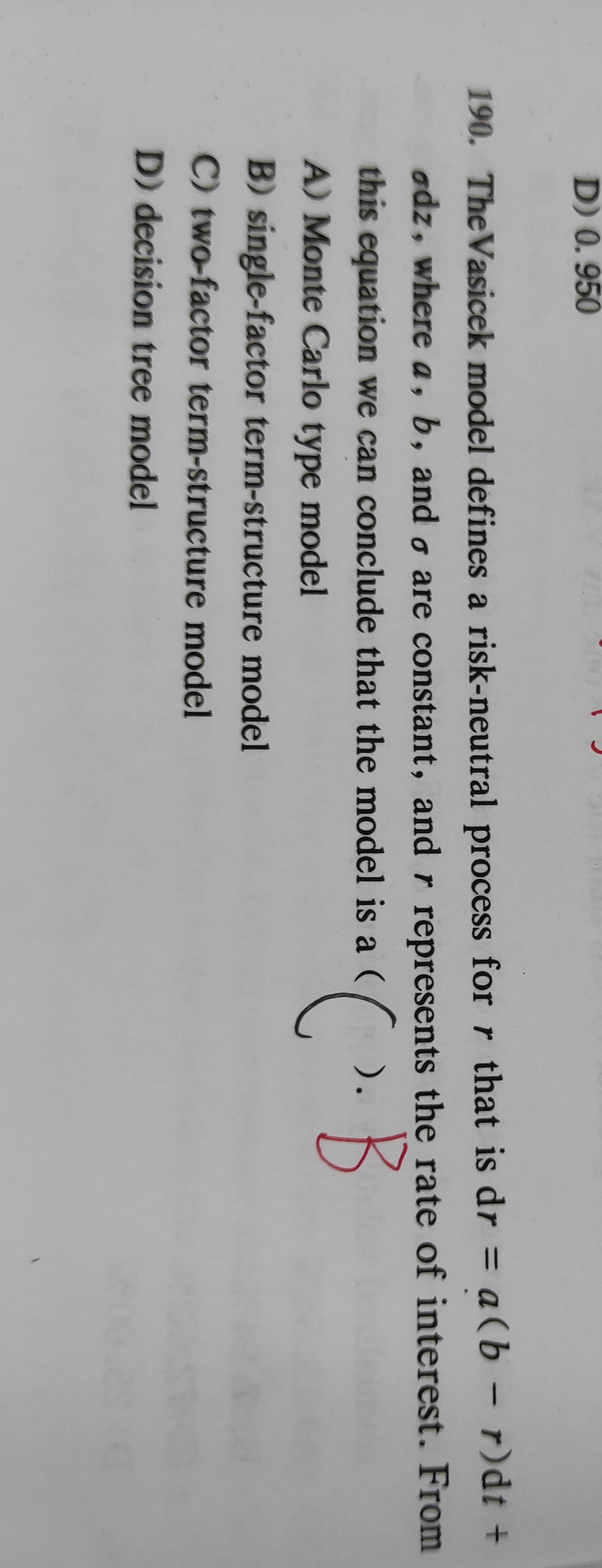 同学,期限结构模型看t哈,根据题干中的公式表示,应该是单因素期限结构模型
