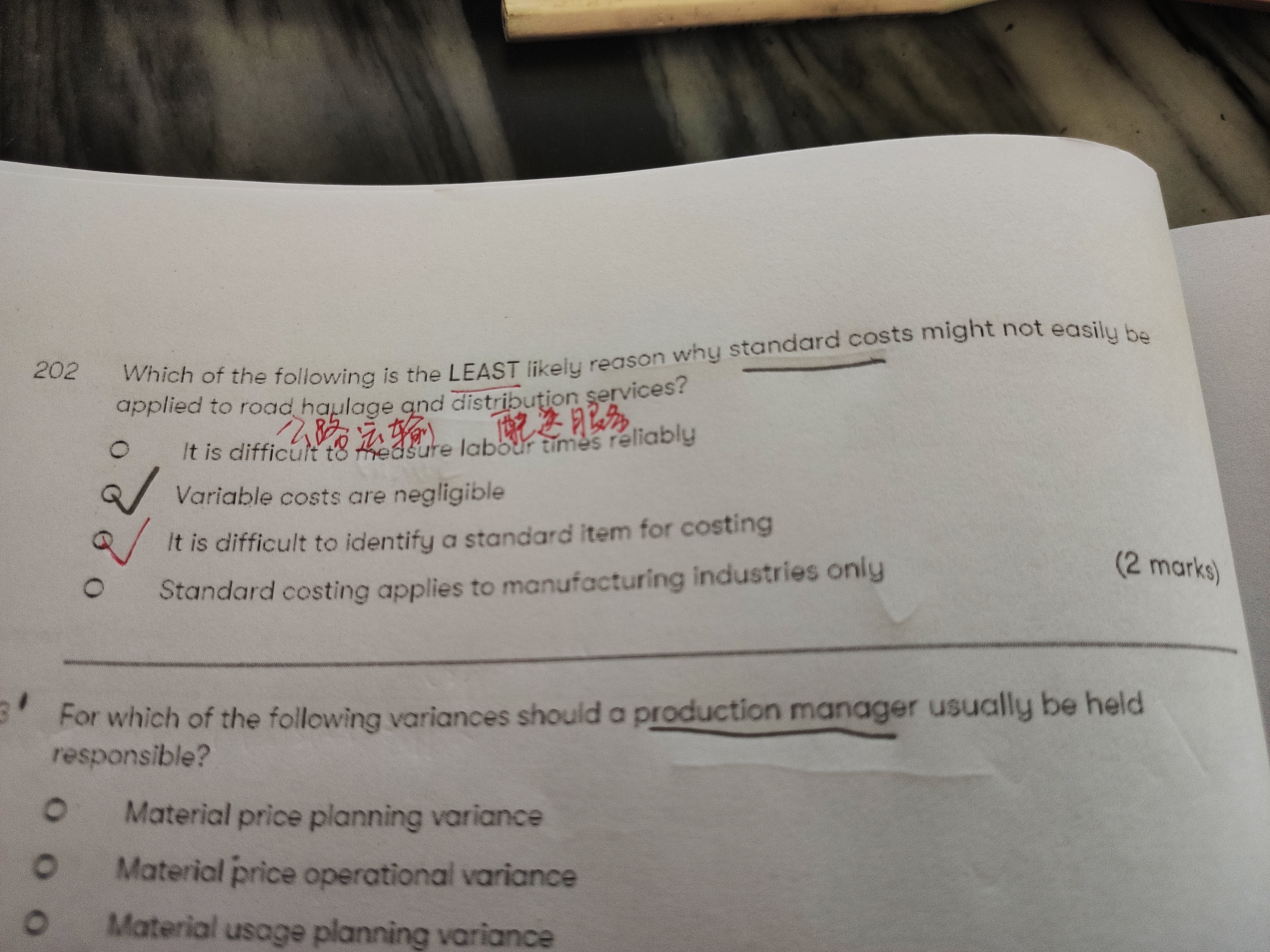 同学,其他三项就不是原因,很难测量劳动时间是不对的,上车时间下车时间可以就是公路运输的劳动时间。变动成本可以忽略不计根本就不对,公路运输变动成本很大的。标准成本只适用于制造行业就是个错误的说法。