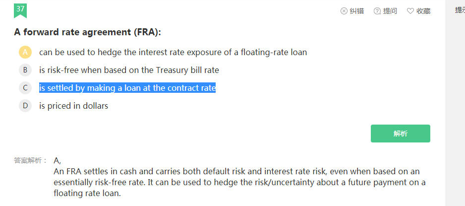同学你好,FRA交割的是FRA双方对应的利差,类似于一笔虚拟的贷款,并非真的贷款合约交割,所以C错。