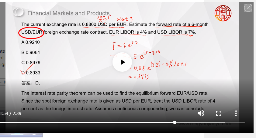同学你好,题干一开始说的The current exchange rate is 0.8800 USD per EUR其实是USD/EUR,即直接标价法。