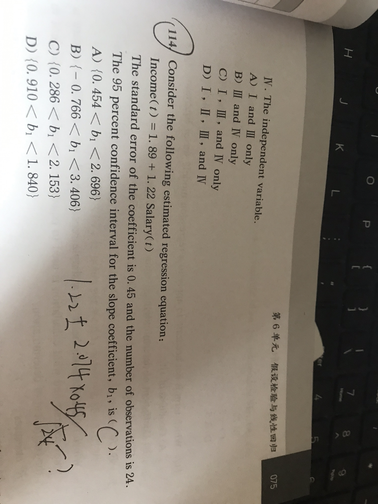 同学,standard error=sigma/√n,在这个题目中给出的就是standard error,不用再除根号的24了哈