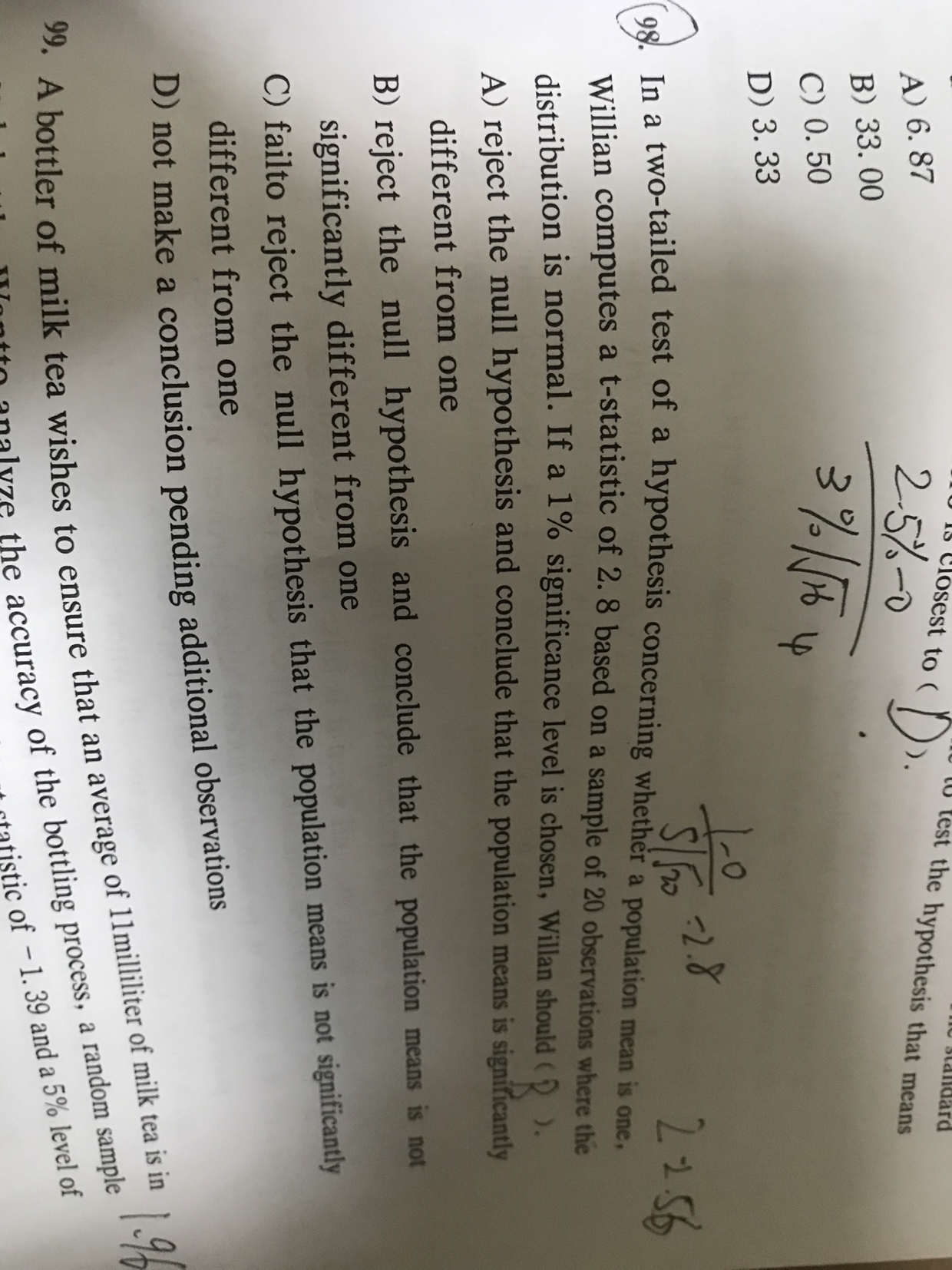 同学你好,因为题干中第三行开头已经表明是正态分布,所以可以直接用T检验统计量与Z关键值进行比较判断;当然题干中也直接给出了t检验统计量,所以不用再纠结样本量的问题了,也可以直接拿t检验统计量跟t关键值进行比较。考试一般都会很清晰的指出的到底是用t分布还是正态分布检验的。