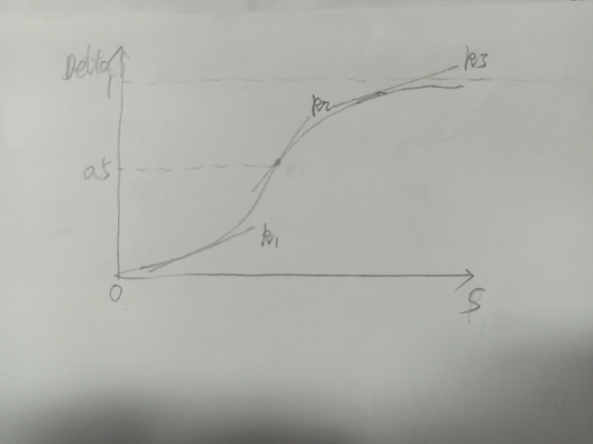 gammga的含义其实就是标的资产变动一个单位对delta的影响,也就是delta曲线的斜率,看涨期权delta曲线的斜率变动是先上升后下降的过程(从k1到k2再到k3),k2的斜率最大,参考图片理解。