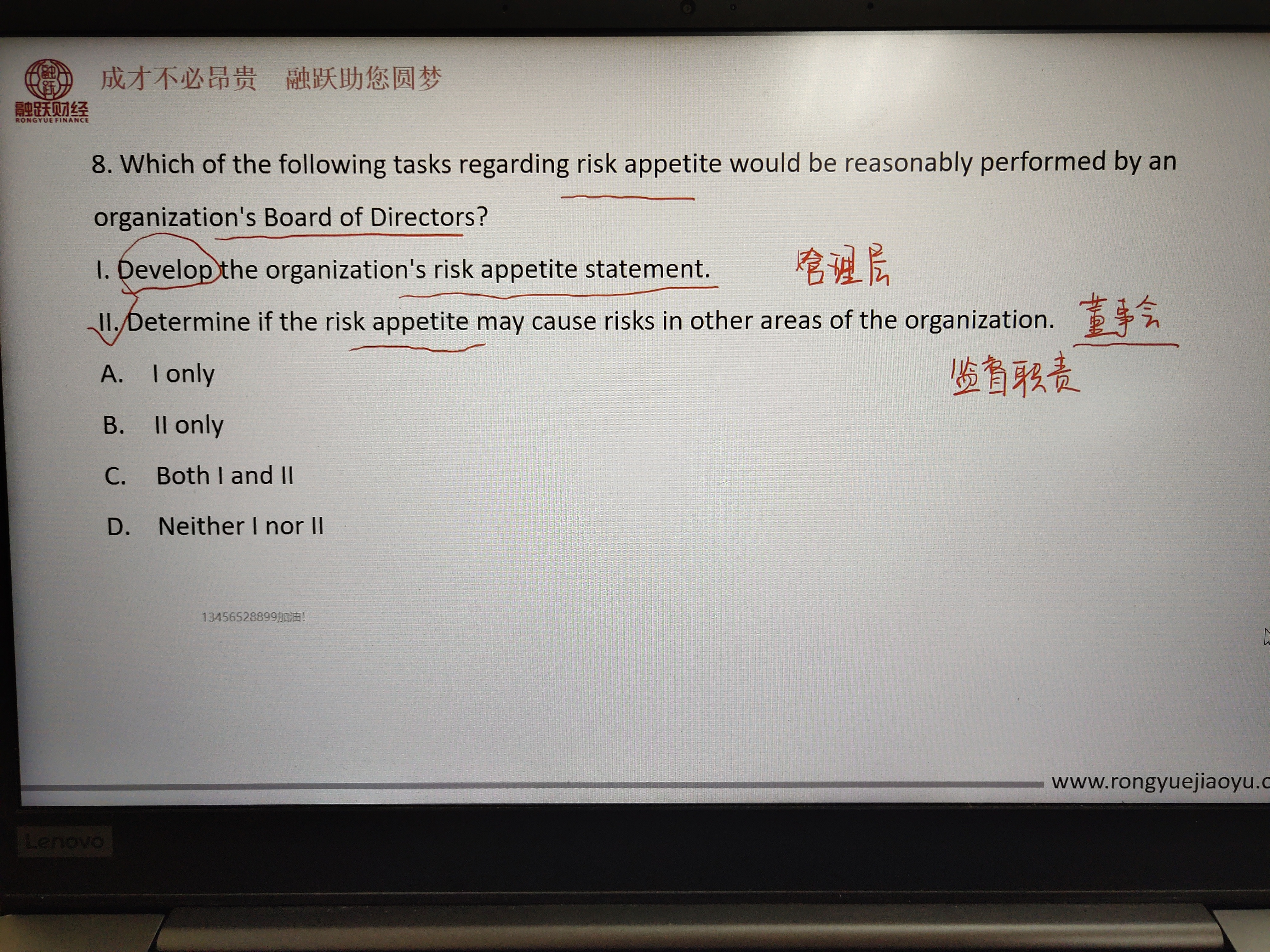 同学你好,题目中第一个说法的意思是开发风险偏好的陈述文件,这个属于具体的执行工作,一般交给管理层来做,董事会只是拍板的角色。