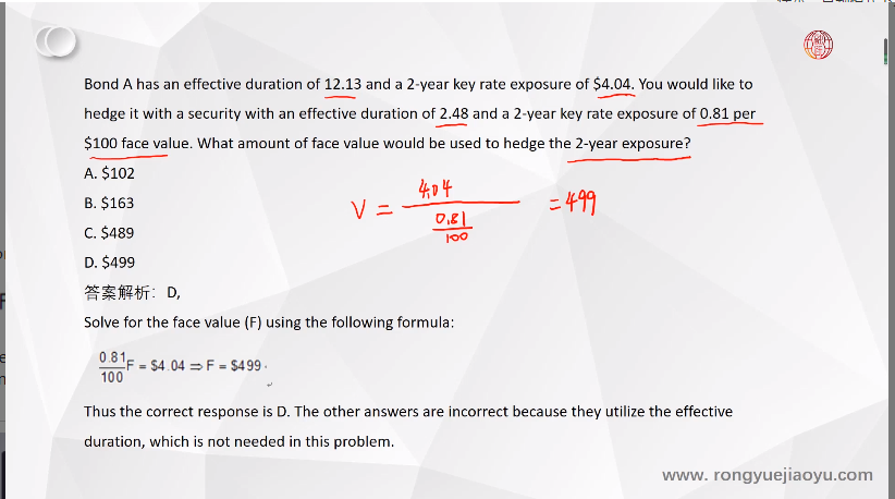 同学,这个题目考察的是对于key rate exposure的对冲哈